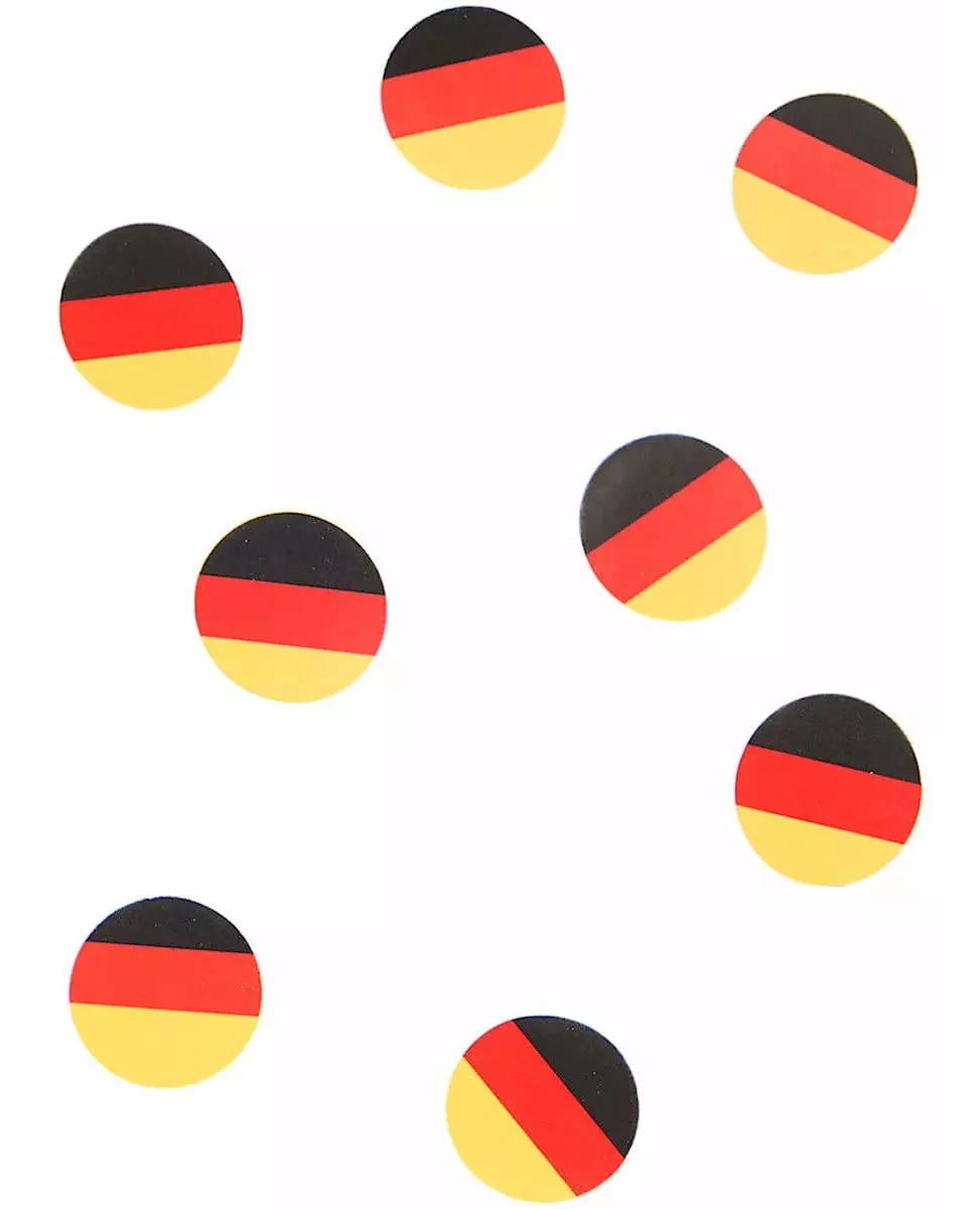 Decorate your table in the colors of Germany! This bag contains 150 table confetti printed with the German flag. They measure approximately 2.5 cm in diameter. These confetti will be perfect for adding color to your table during a festive event or for a German-themed evening. 100% French manufacturing. Accessories included: -150 Table confetti