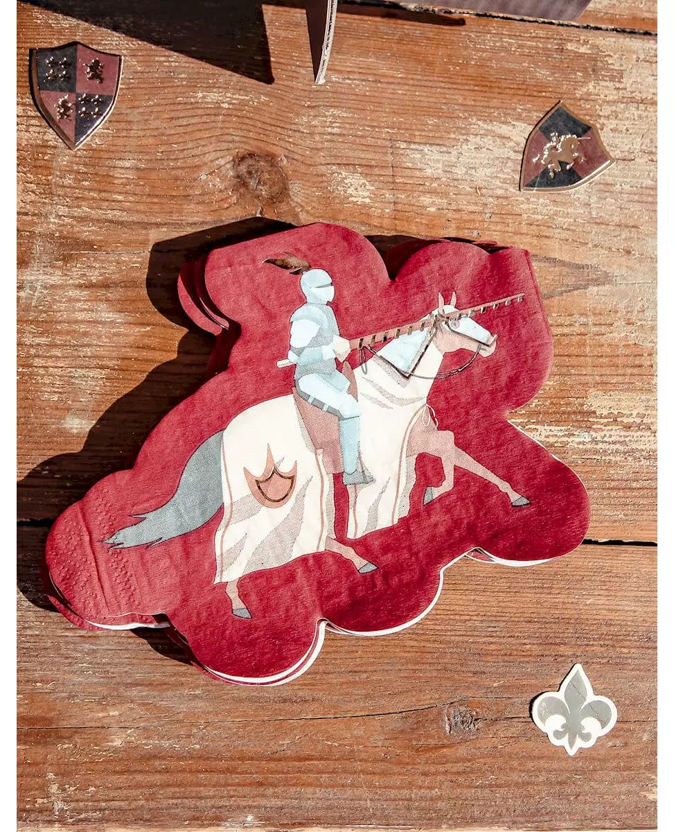 Join the warriors of the Middle Ages for a buffet! This set consists of 16 paper napkins. They measure approximately 33 x 24 cm unfolded. Burgundy in color, they take the shape of a knight galloping on his horse. These medieval-themed napkins will be perfect for a knight-themed party!. Accessories included: 16 Napkins Material: Paper
