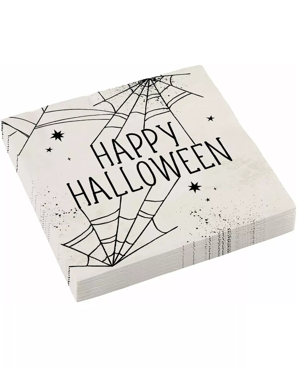 Halloween Spider Web! This set consists of 16 spider web paper napkins. They are white with a black spider web print. They have the words "Happy Halloween" written on them in black letters. They measure approximately 33 x 33 cm when unfolded. Complete your spider decoration for Halloween with these spider web napkins! Accessories included: 16 napkins Material: Paper