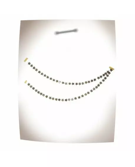 For a starry decoration! This 2.5 meter garland is made up of small cardboard stars 3 cm in diameter. These stars are glittery gold and are held together by a white string. For a space or fairy themed decoration, this garland will be ideal!. Accessories included: Garland Material: Cardboard