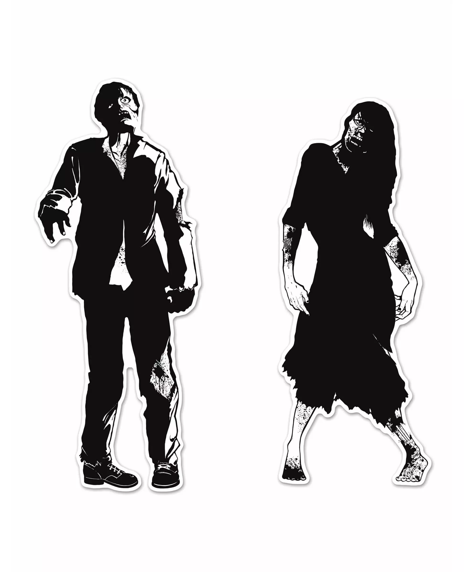Straight ahead, undead! These two decorations represent the black and white silhouettes of zombies. A man and a woman who seem to be advancing towards us, to feast on the entrails of the first person they come across. With these zombie silhouettes, your interior will be chilling for Halloween!. Accessories included: Silhouette decoration Material: Cardboard