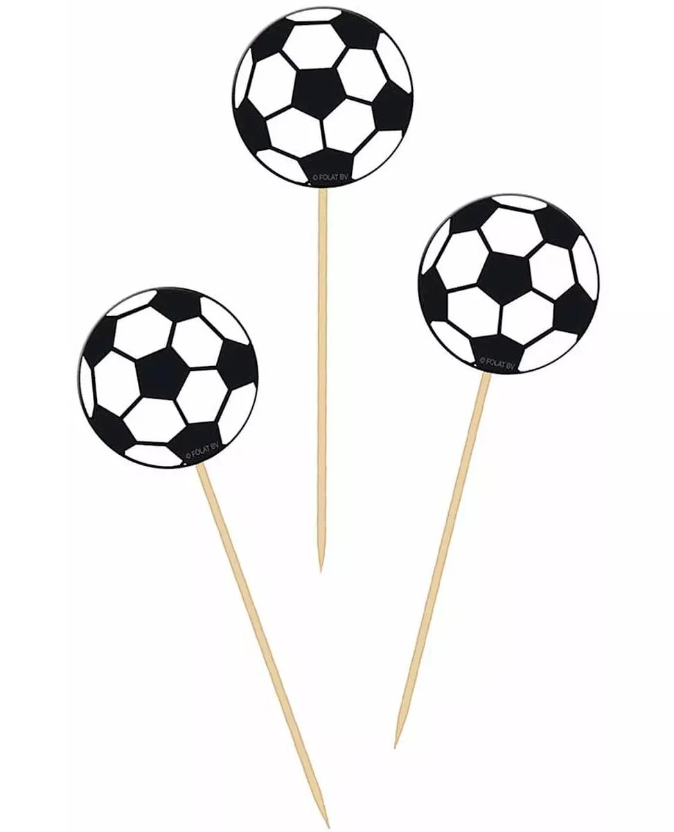 Football right to your plate! This set consists of 20 picks. Made of wood, they each have a black and white paper football attached to the end. Ideal for sticking pieces of cheese or fruit into your appetizers! A successful football evening with these picks and their ball!. Accessories included: 20 picks Material: Wood and paper