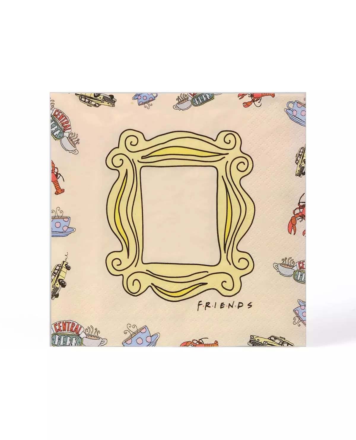 Make way for a party with friends! Officially licensed by Friends™, these napkins are sold in packs of 20. Made of paper, they measure approximately 33x33cm. They are all decorated with different patterns such as a central frame, cars, coffee cups, as well as the inscription "Friends". This pack will be perfect for your table decoration for a birthday party with friends! Accessories included: 20 napkins Material: Paper Care: Do not wash