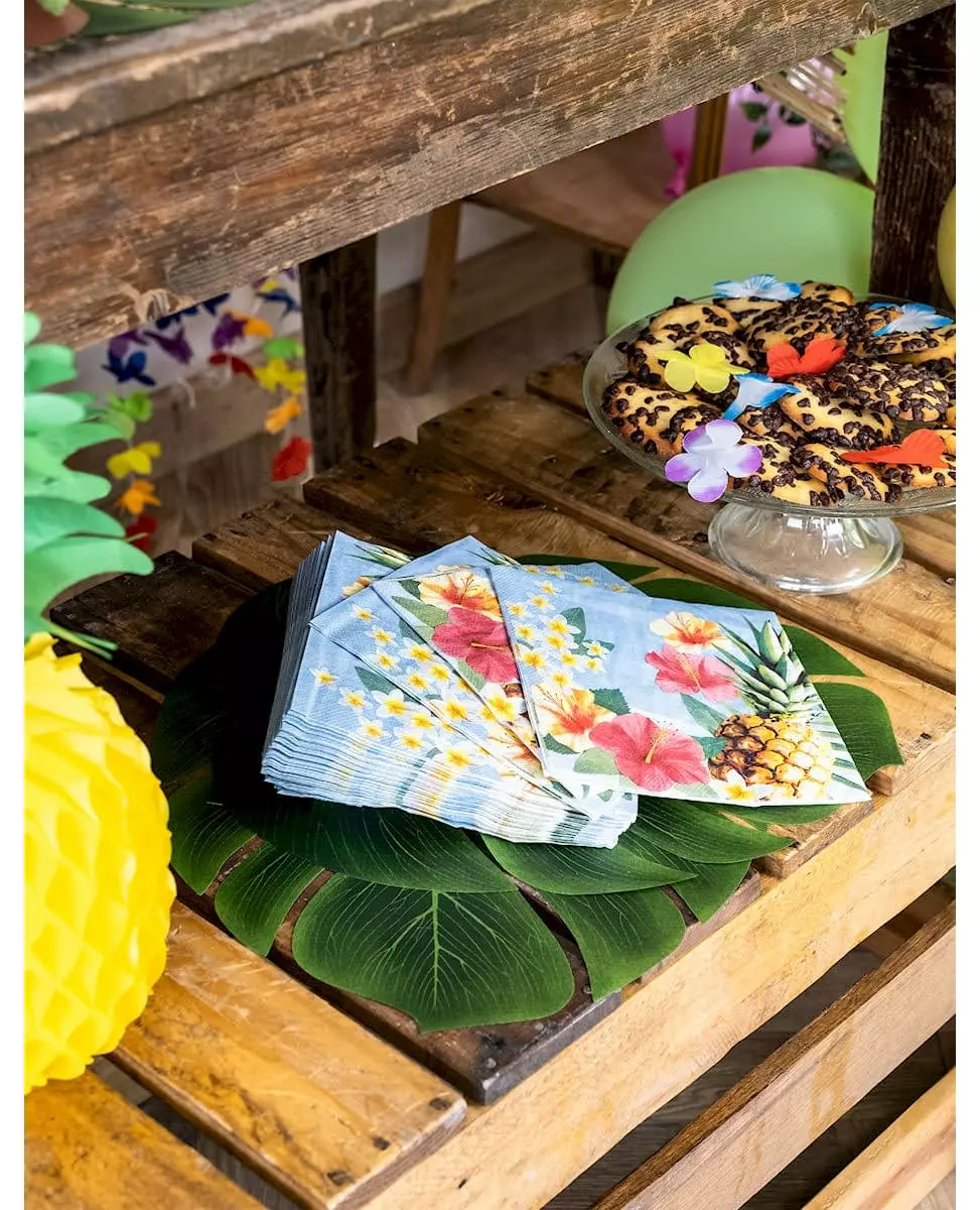 Very pretty colors! 20 paper napkins measuring 33 X 33 cm and featuring a print of hibiscus and frangipani flowers, typical flora of Hawaii. Travel just by wiping your mouth during a themed meal. Accessories included: 20 Napkins Material: Paper