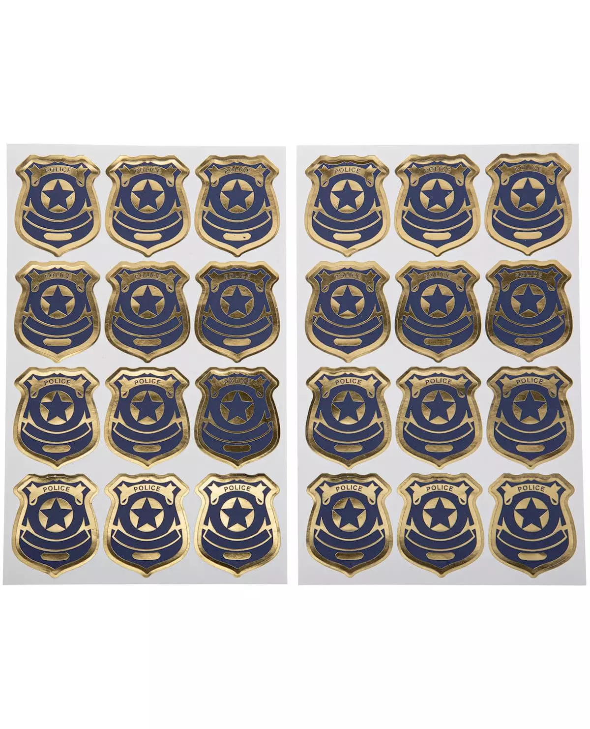 Police badge stickers to stick on for a personalized decoration! These police badge stickers are sold in packs of 24. They are approximately 4 cm in size and come in navy blue and gold. Use these police stickers to personalize your decoration for a birthday or themed party!. Accessories included: 24 Stickers