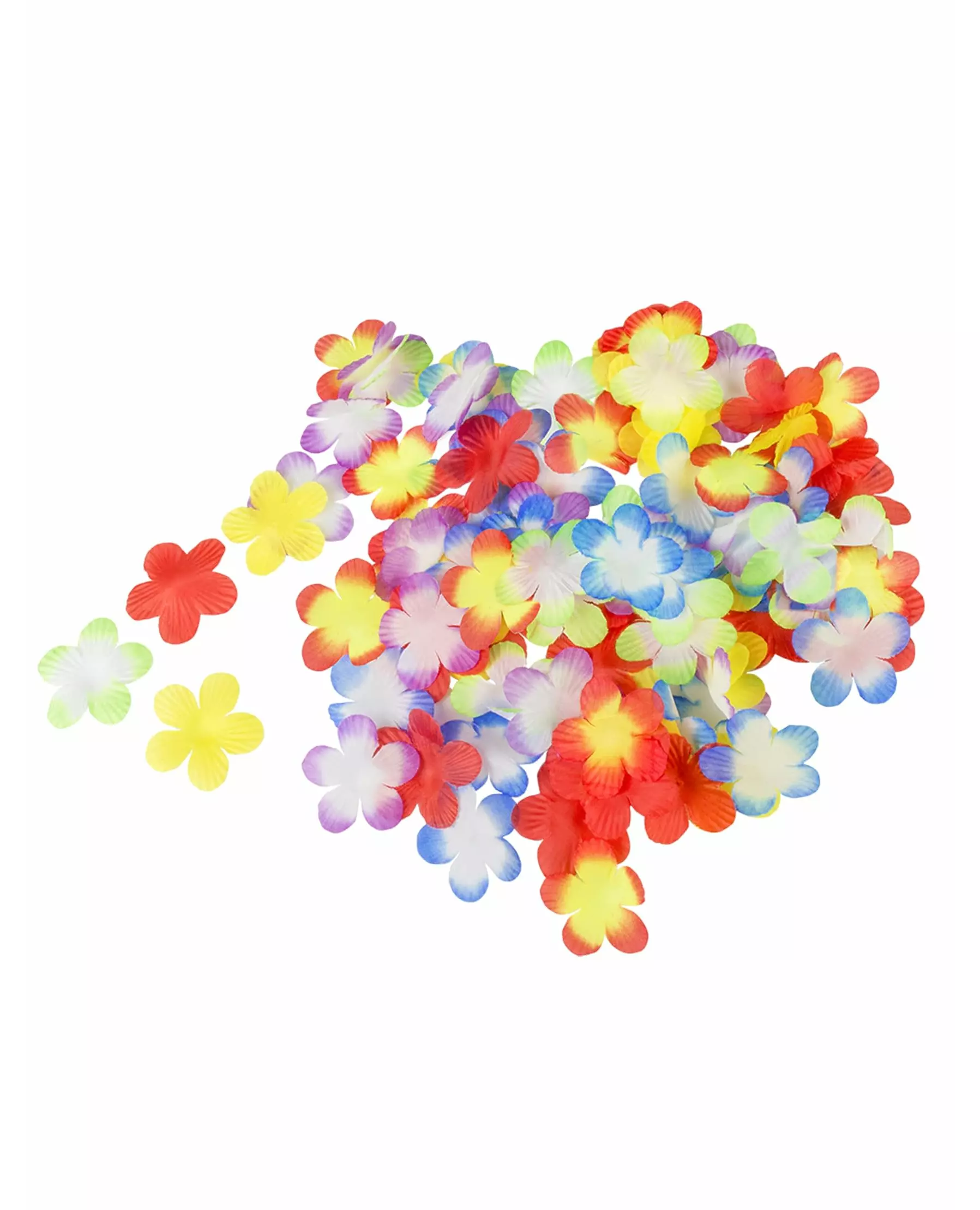 Flowers galore! This set includes approximately 300 Hawaiian decorative flowers made of synthetic material. These flowers come in all colors: white, red, orange, purple, yellow, and blue... These flowers will be perfect for a floral table decoration at a tropical-themed party! Accessories included: 300 flowers Material: 100% Polyester