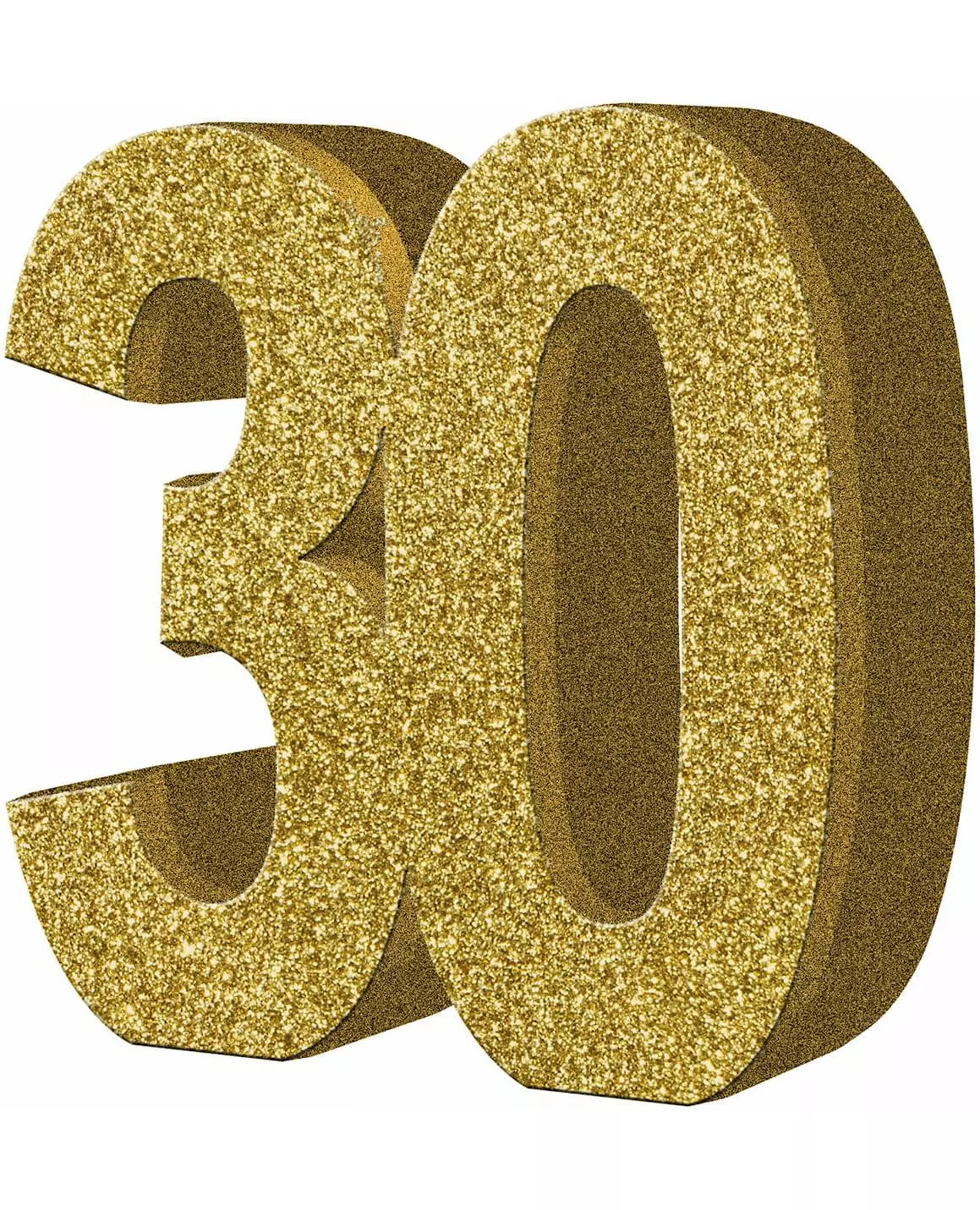 Celebrate your birthday in style! This 30th birthday table decoration measures 20 x 20 cm and is 3 cm thick. It is made of polystyrene covered with gold glitter. This birthday decoration will be perfect for decorating your party room for your 30th birthday. Accessories included: 1 Decoration Material: Polystyrene