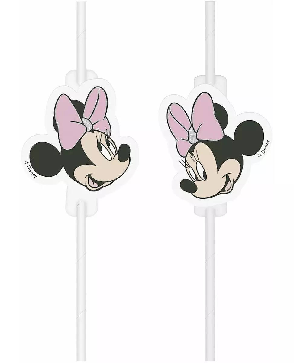 Invite Minnie to your birthday! This set consists of 4 officially licensed Minnie™ straws. They are made of plastic and are decorated with a sticker representing Minnie's face. These straws will be perfect to complete a Minnie table decoration for a birthday party. Accessories included: 4 Straws Material: Plastic, cardboard