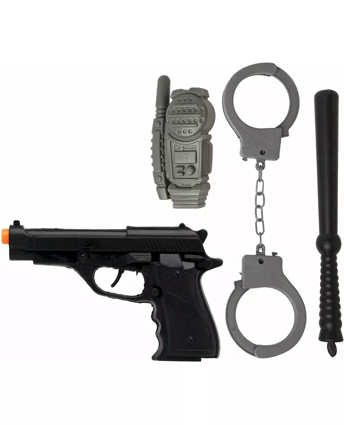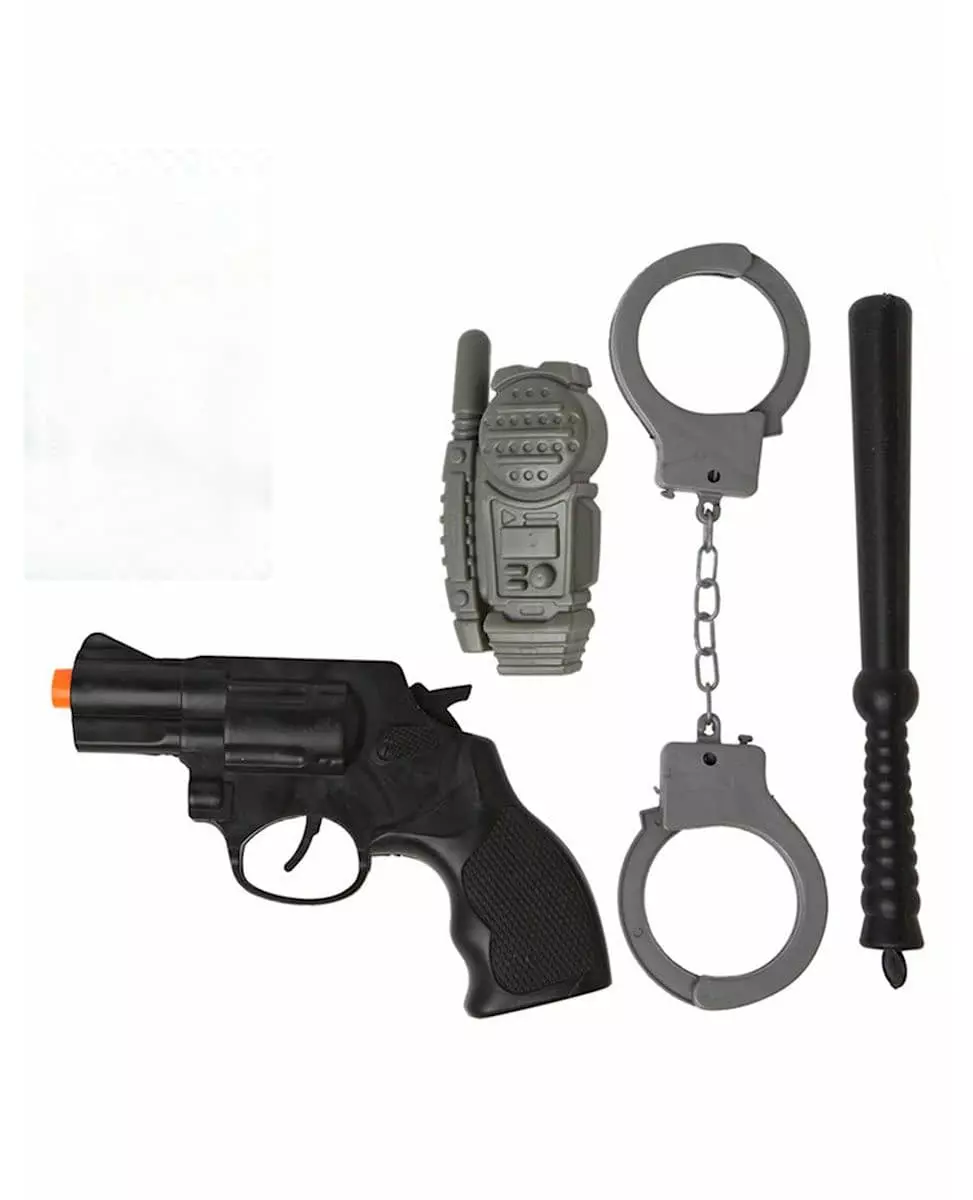 With all these accessories, you will be the police officer! This police officer kit consists of 4 accessories: - a black plastic pistol - a fake walkie-talkie - a pair of gray handcuffs - a black baton The model of the kit will be sent randomly. Complete, this pack will be perfect to complete a police officer costume for the Carnival. Accessories included: Handcuffs Pistol Fake walkie-talkie Baton Material: Plastic