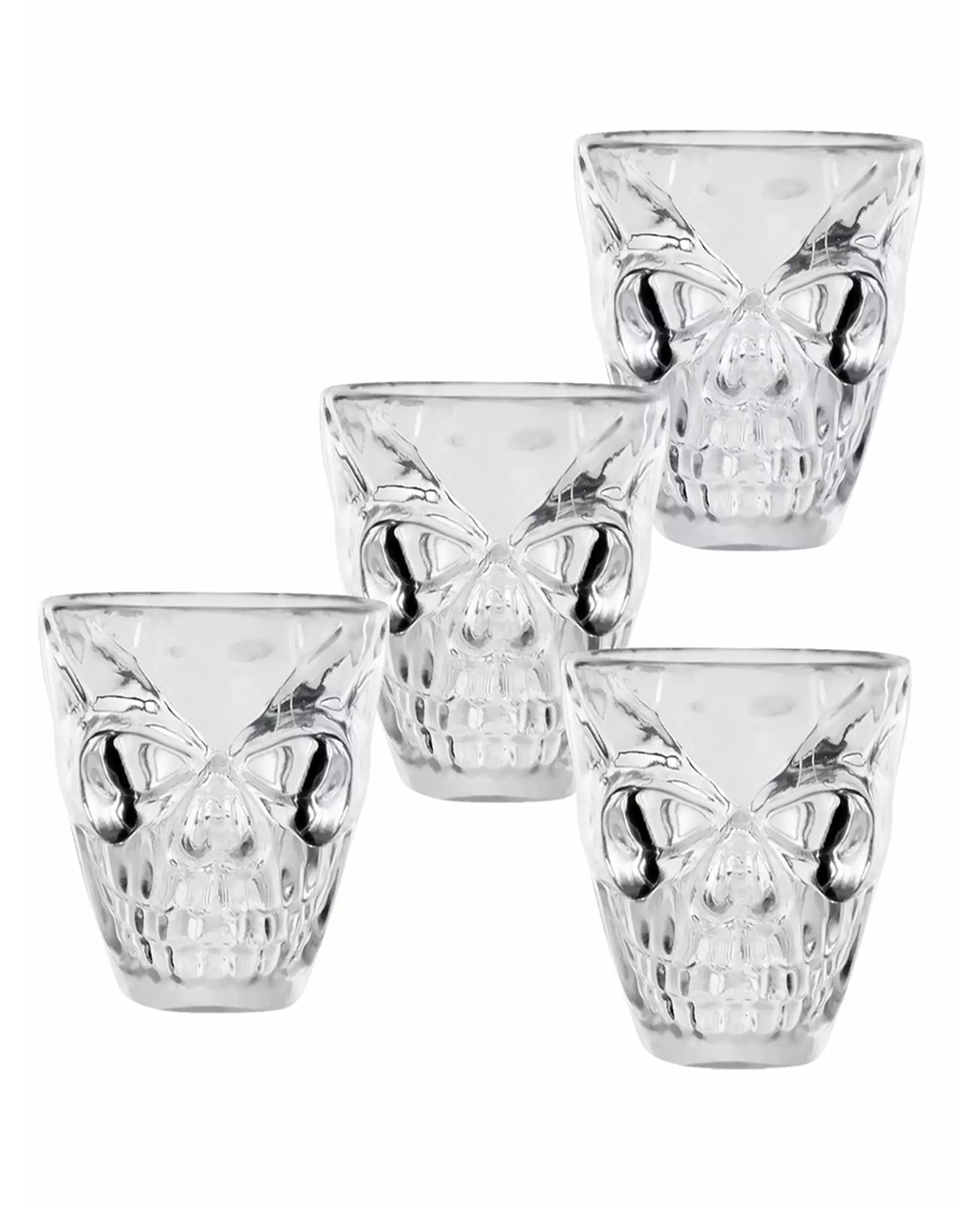 Offer shots with these glasses! These 4 plastic skull shot glasses have a capacity of 50 ml. These shot glasses are sculpted to represent skulls. They will be perfect for a horror-themed evening or for Halloween. Accessories included: 4 Shot glasses Material: 100% plastic