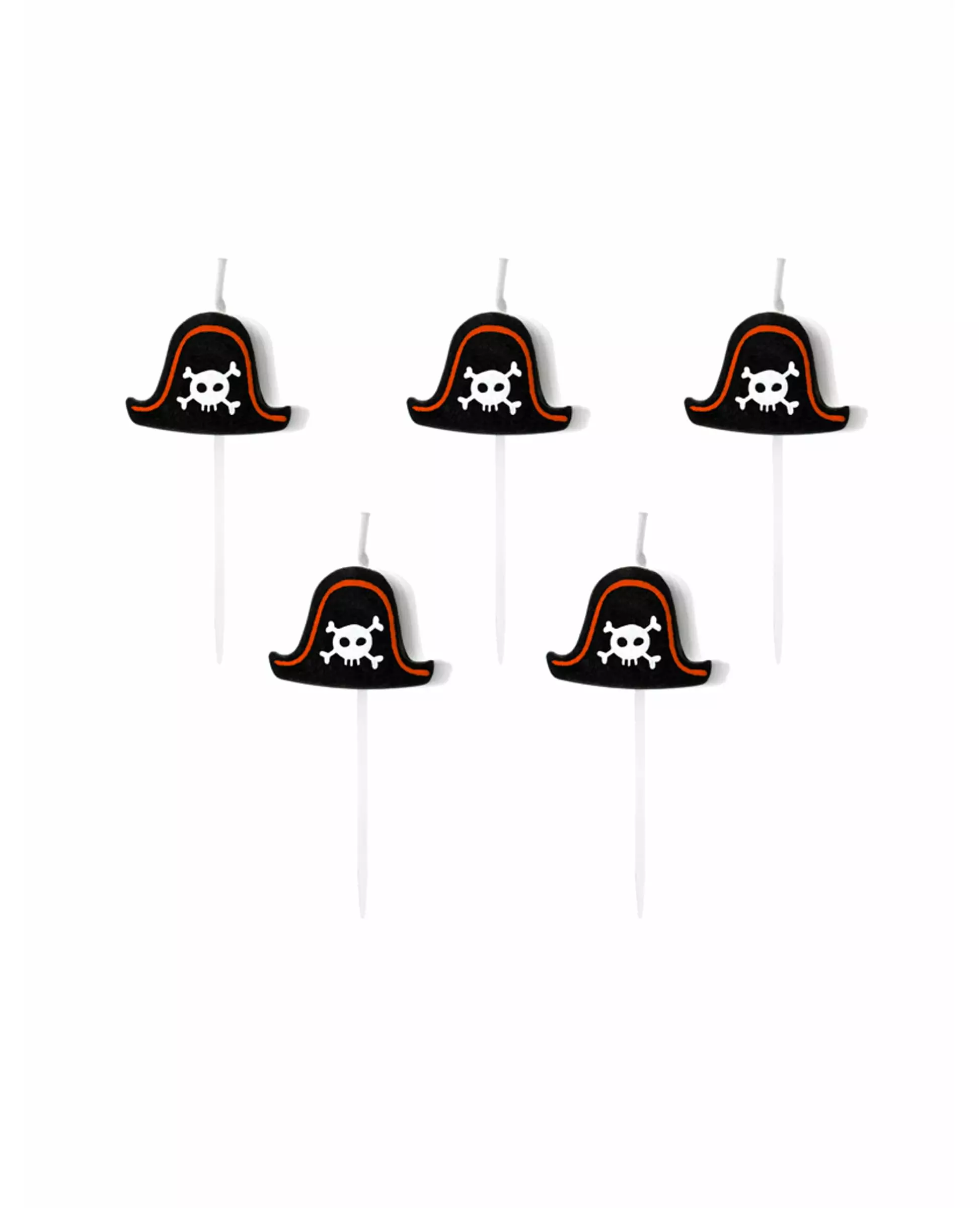 Candles for a cake worthy of a pirate! These birthday candles are sold in packs of 5. They represent a pirate hat of approximately 2 cm and are mounted on plastic picks for easy placement on your cake. Organize a perfect pirate birthday for your son who will be delighted to discover the magnificent pirate cake that you have prepared for him. Accessories included: 5 Candles Material: Wax