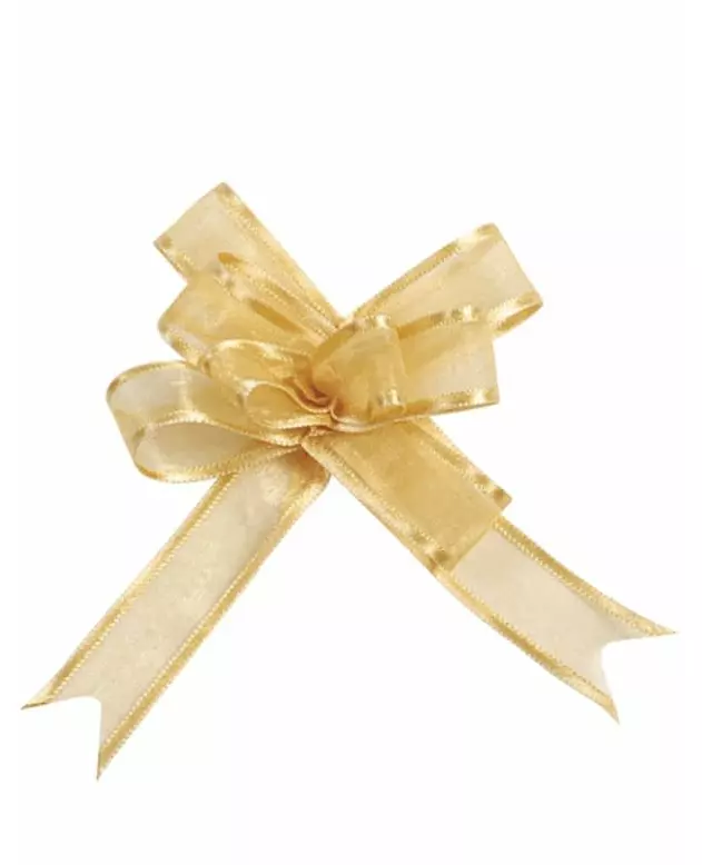 A golden decoration This set of 5 mini gold bows is made of organza. The ribbon they are made of measures approximately 16 mm. These gold bows will be perfect for decorating your Christmas gifts. Accessories included: 5 mini bows