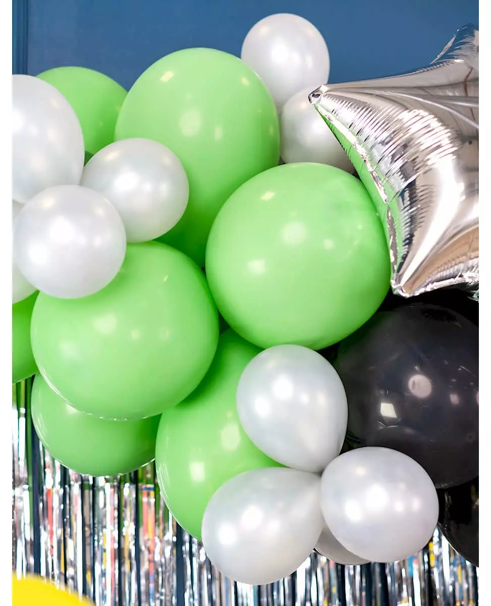 Create a green decoration! This set of 50 latex balloons is green and biodegradable. They can be easily inflated using a balloon pump. These balloons will be perfect for decorating your room decorations at all your festive events. Accessories included: 50 Balloons Material: Natural latex