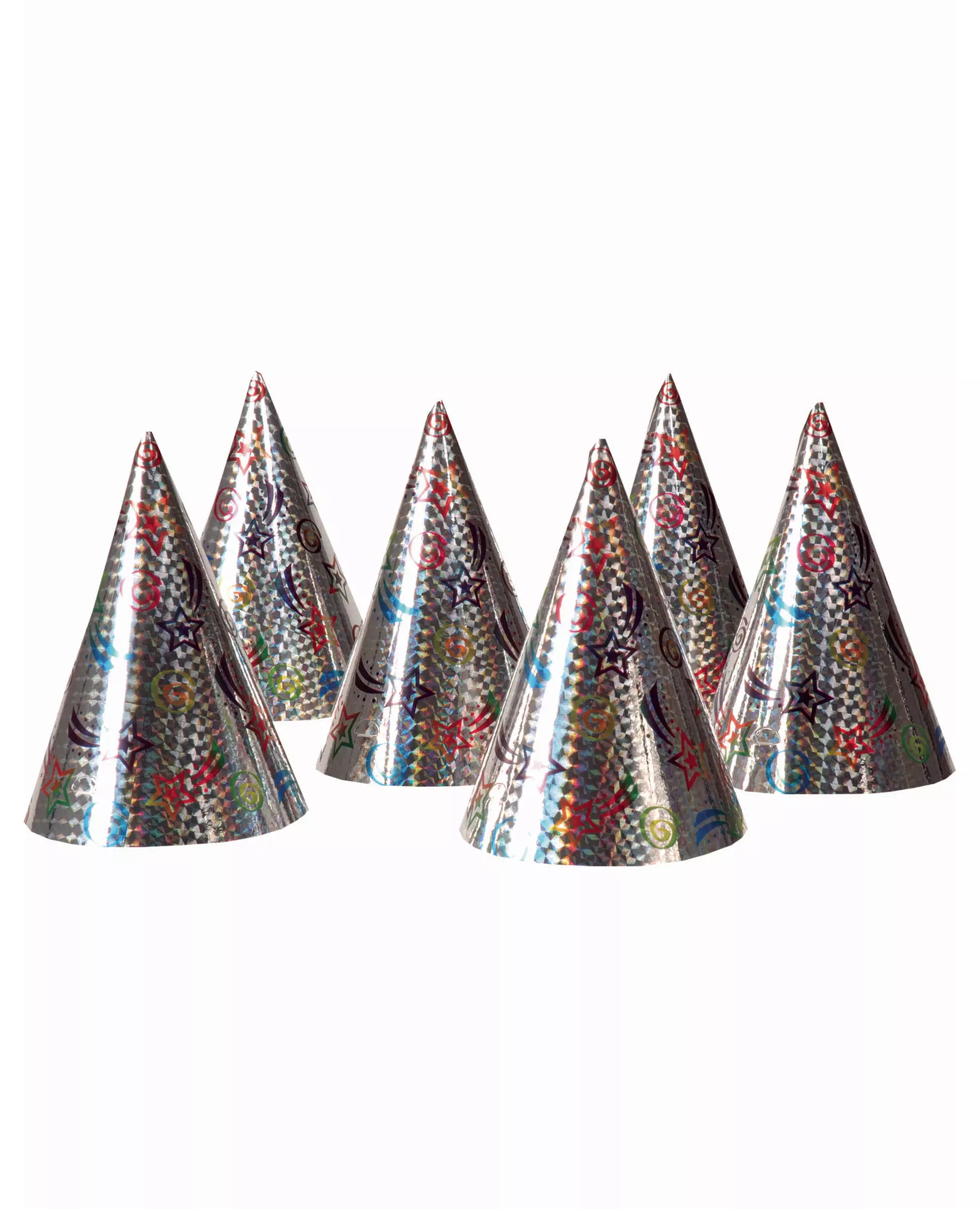 6 Holographic Star Party Hats