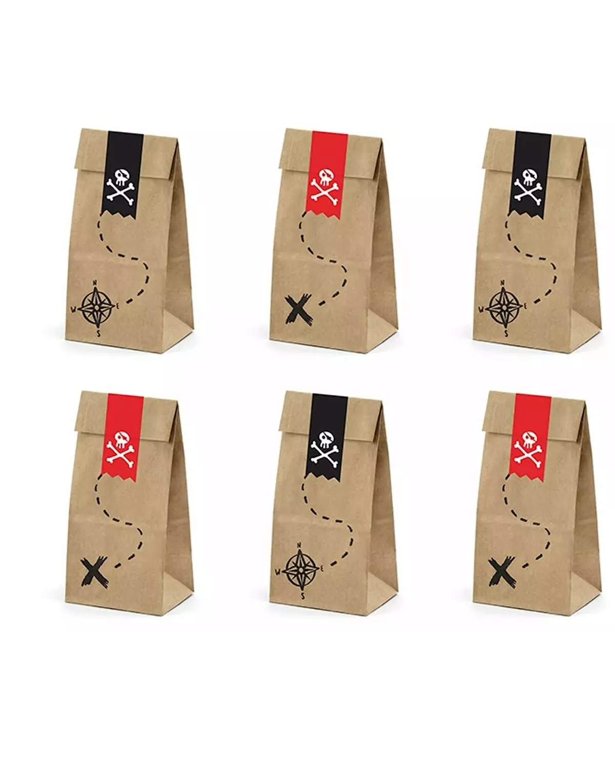6 Pirate Party Kraft Paper Gift Bags 8 x 18 x 6 cm