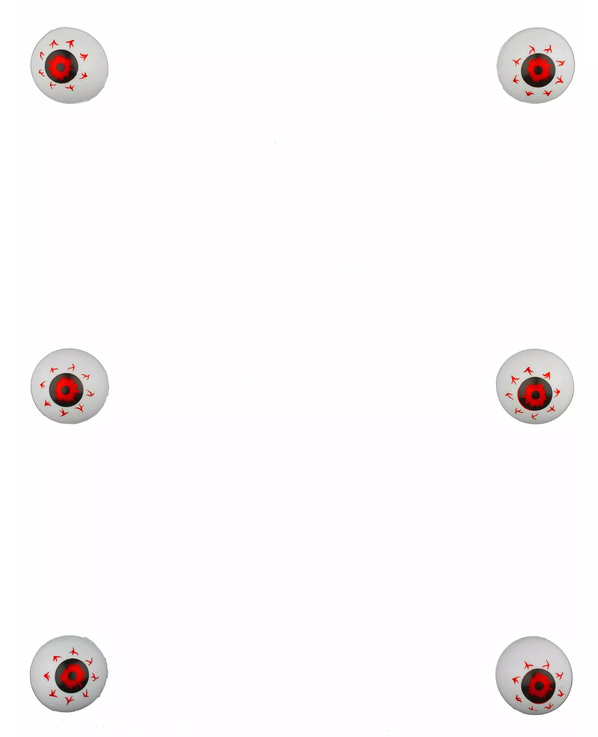 flayed decoration This set of 6 globular eye decorations will be perfect for decorating a table in a macabre way. Each round eye measures approximately 3.5 cm in diameter. They will be perfect placed on a table, or incorporated into a cocktail for example!. Accessories included: 6 Eyes Material: Plastic