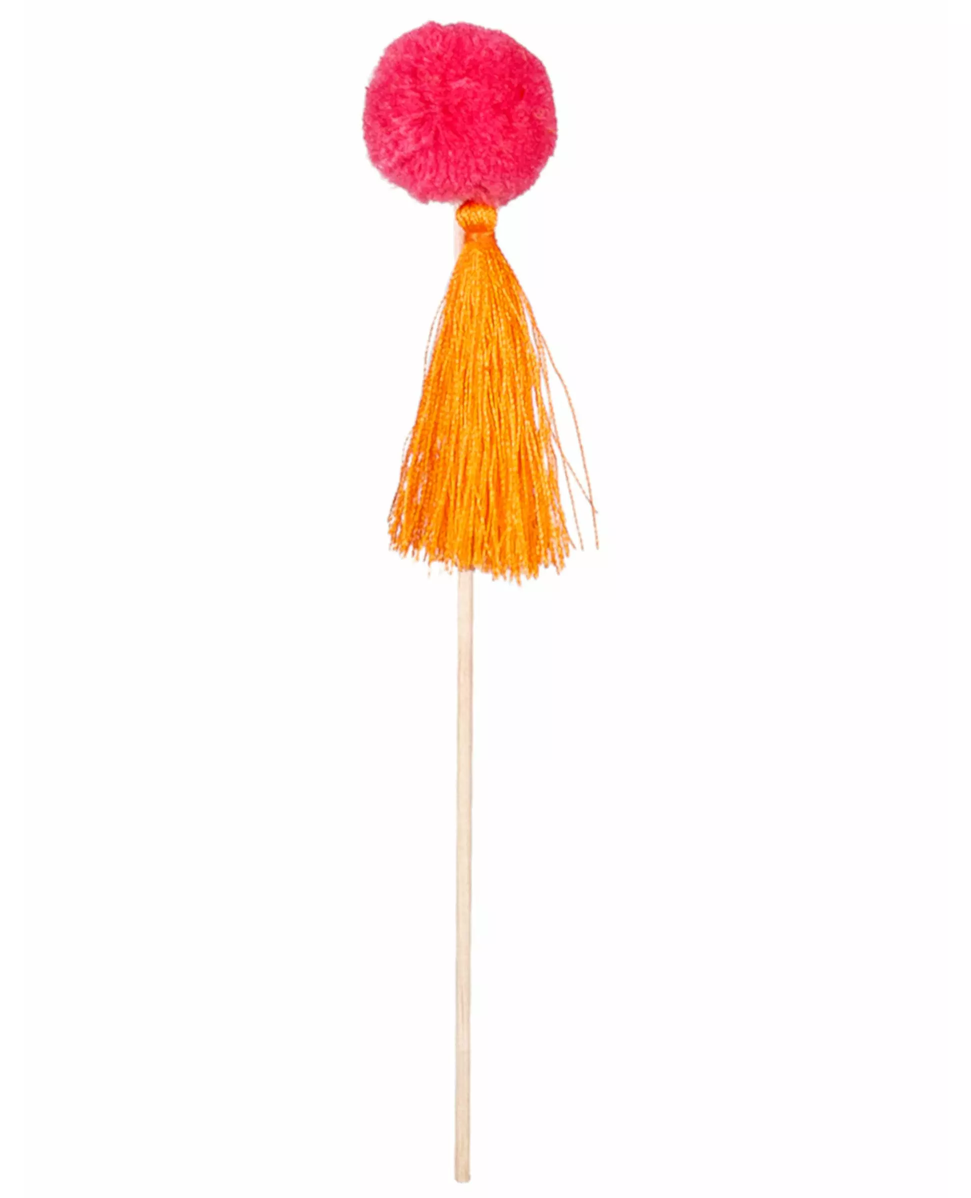 Pom-pom picks for a colorful aperitif! These aperitif picks are sold in sets of 6. They are approximately 16 cm high and have a colorful pompom on the top with a tassel. Add color to your aperitif with these cocktail picks at a Mexican-themed party!. Accessories included: 6 Cocktail picks Material: Wood