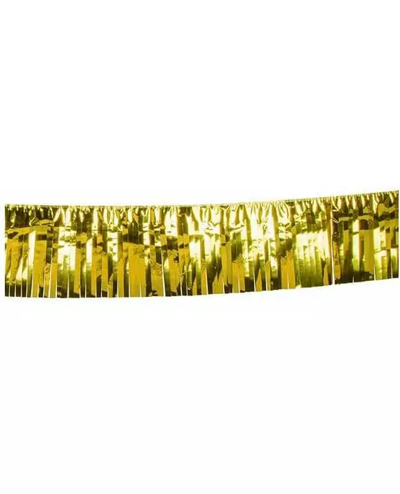 All in gold! This gold fringe garland measures approximately 6 meters with a height of approximately 30 cm. Perfect for decorating your personal space during festive events. Accessories included: Garland Material: Plastic