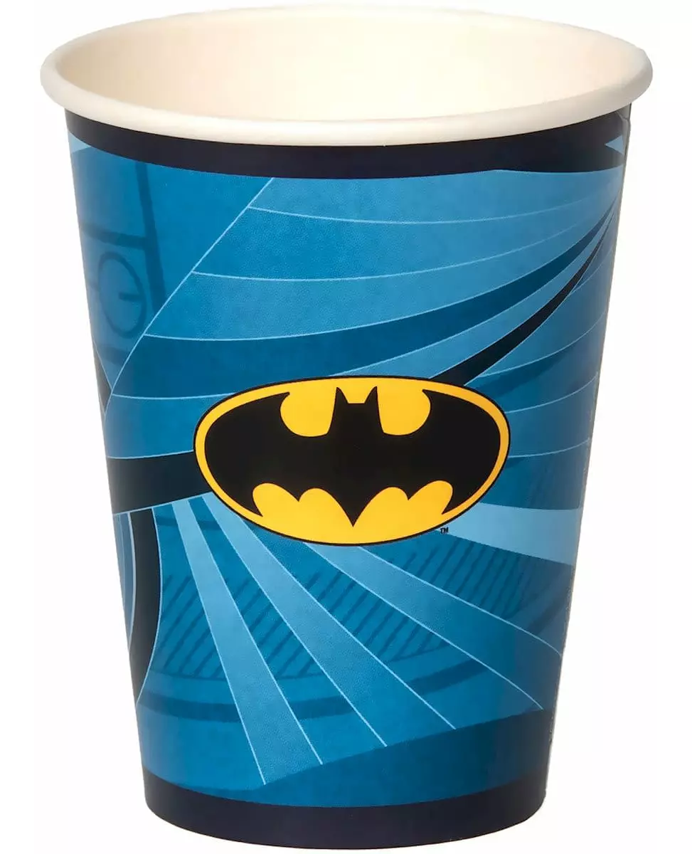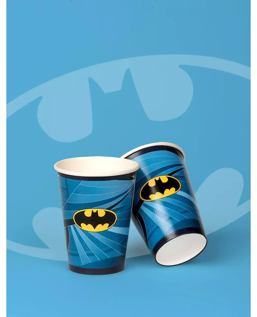 The inimitable Batman™ is coming to your home! This set contains 8 officially licensed Batman™ paper cups. They hold approximately 210 ml. The cups are in shades of blue. They are printed with the logo of the unforgettable Batman™. You can complete your table with other products on the same theme. These cups will be magnificent to decorate your table for a Batman™ themed party!. Accessories included: 8 cups Material: Cardboard