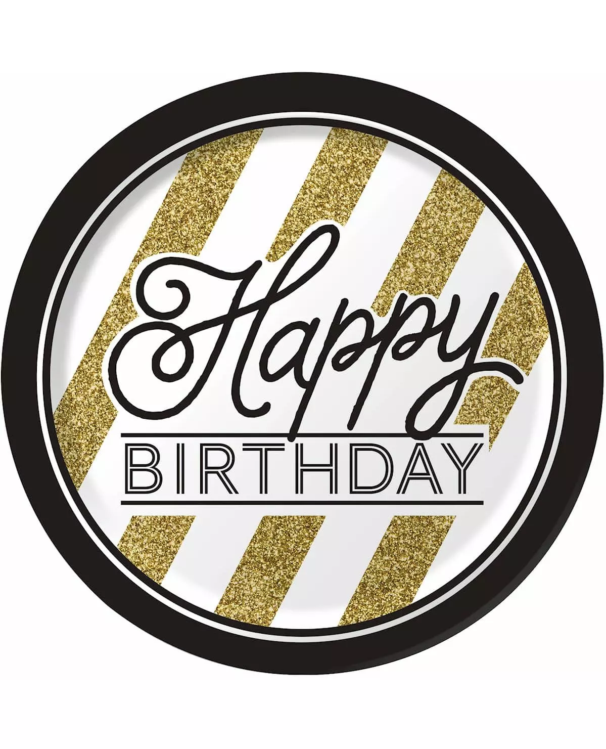 8 Happy Birthday Black and Gold Paper Plates 23 cm