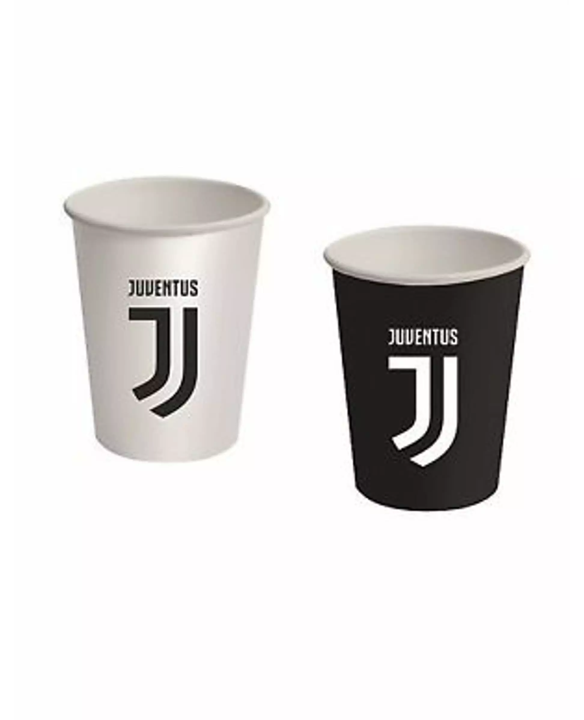 Perfect for a 100% Juventus™ snack! This set consists of 8 cardboard cups with a capacity of approximately 250 ml. Officially licensed by Juventus™, they are black and white with the logo of the Italian football club. These cups will be perfect to complete a Juventus table decoration. Accessories included: 8 Cups Material: Cardboard