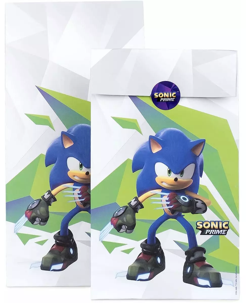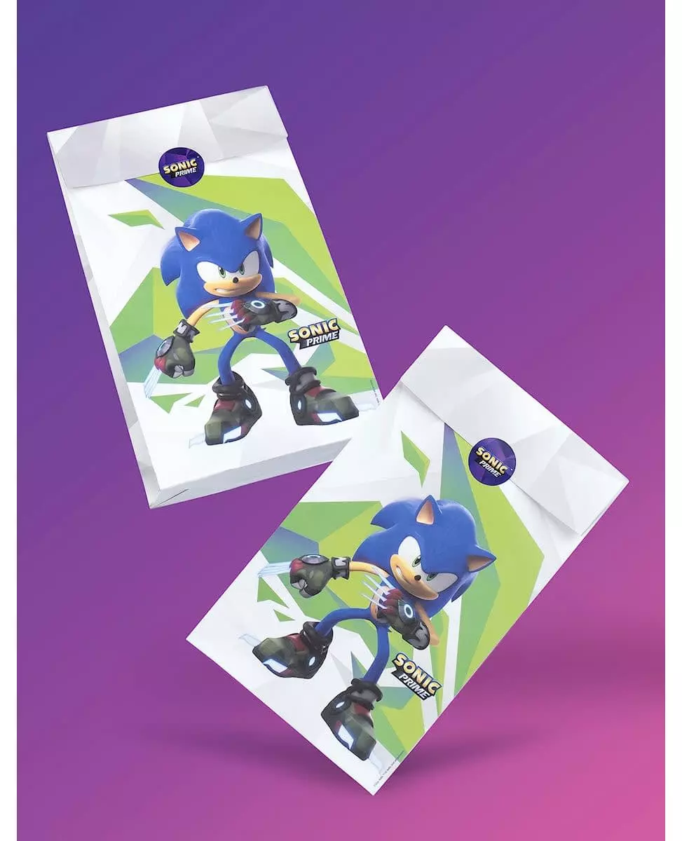 Add a touch of adventure to your party with Sonic Prime™ goody bags! This pack contains 8 officially licensed Sonic Prime™ paper goody bags, measuring 15 x 30 cm. Each bag is decorated with the image of the famous blue hedgehog. The white background is embellished with green geometric patterns, reminiscent of Sonic™s legendary speed. These bags are ideal for distributing treats to your guests at a video game-themed party or for fans of the Sonic™ universe. Accessories included: 8 goody bags Material: Paper