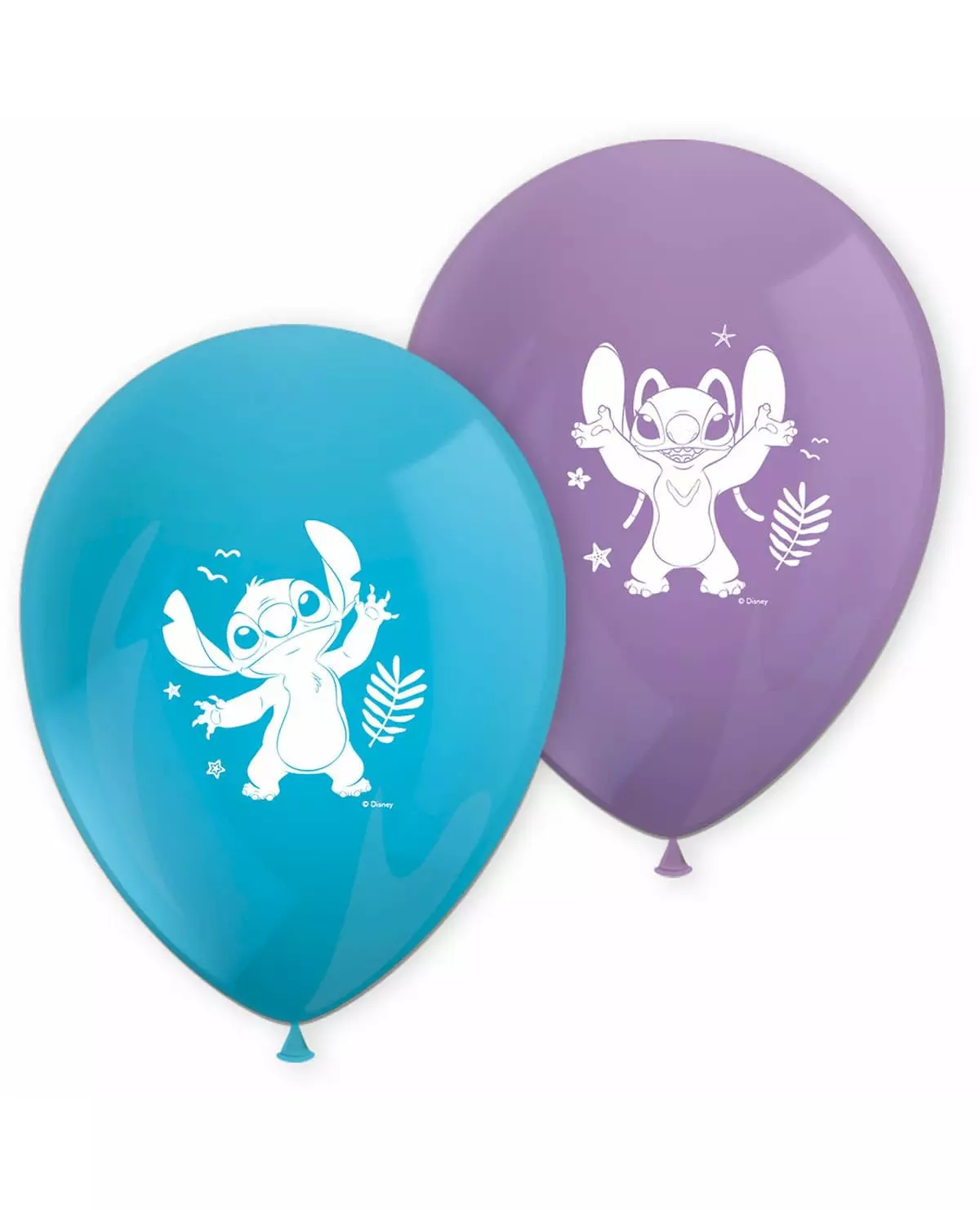 The world of Stitch™! These balloons are sold in packs of 8 and are made of latex. Officially licensed by Stitch™, they consist of 4 blue balloons with the image of Stitch™ and 4 purple balloons representing Angel. They measure approximately 27.5 cm in diameter. These balloons will add the finishing touch to your Stitch™-themed room decoration for your child's birthday party!. Accessories included: 8 Balloons Material: Latex