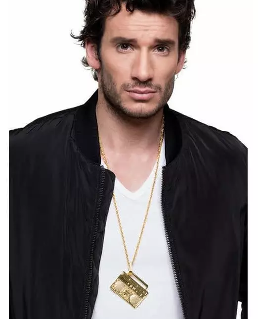 For an 80s themed party! Made of gold metal, this necklace is for adults. It consists of a chain measuring approximately 77 cm in length and a 6 cm wide pendant representing a radio. This necklace will be perfect to accessorize your outfit for an 80s themed costume party. Accessories included: Necklace Material: Metal