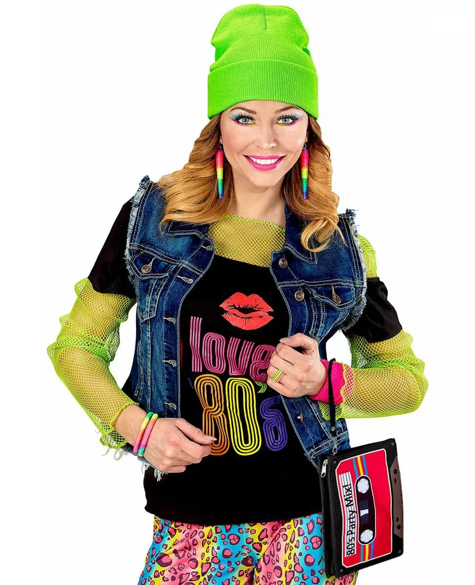 Back to the 80s! This cassette bag is for adults. It is printed with a cassette in pink tones representing the cassettes of the 80s. The inscription "80's Party Mix!" is present on the front. It will close easily with a zip fastener. This bag will be perfect to complete your 80s outfit for a retro-themed costume party for example! Accessories included: Bag