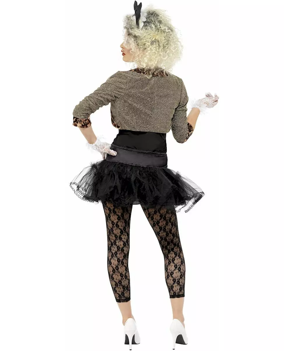 Be old school! This 80s costume for women consists of a jacket, a top, a tutu, a headdress, gloves and tights. (Shoes, wig and pendant not included). One size 40-42. This 80s costume is perfect for embodying your idols during your costume parties. Accessories included: Top Jacket Tutu Headdress Gloves Tights Material: 100% Polyester Care: Hand wash