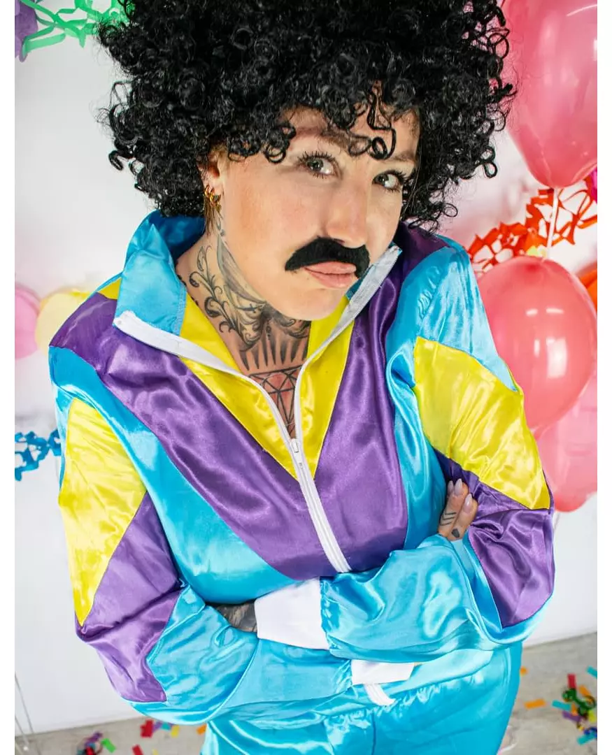 Colors that will remind you of your 80s! This 80s jogging costume for adults consists of a brightly colored tracksuit, reminiscent of the style of the eighties! It is easy to wear with a zipper on the jacket. The pants are adjustable at the waist thanks to an elastic band. The tracksuit is also slightly tightened at the wrists and ankles. This costume is ideal for your 80s themed parties or for a sporty flashback!. Accessories included: Jacket Pants Material: 100% Polyester Care: Hand wash