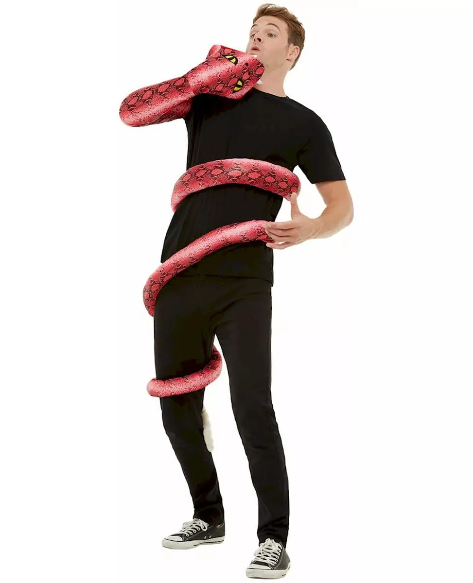 The world's largest snake! This adult anaconda costume features a long snake puppet. This puppet is shaped like a snake. The top of the snake is a sleeve that goes over your arm. The end on your hand is a snake head that goes over your hand like a puppet. The rest of the snake's body will wrap around your torso and leg. With this costume, give the illusion of being faced with the largest snake in the world during a horror or even humor-themed evening. Accessories included: Puppet Material: 100% polyester fabric Care: Hand wash