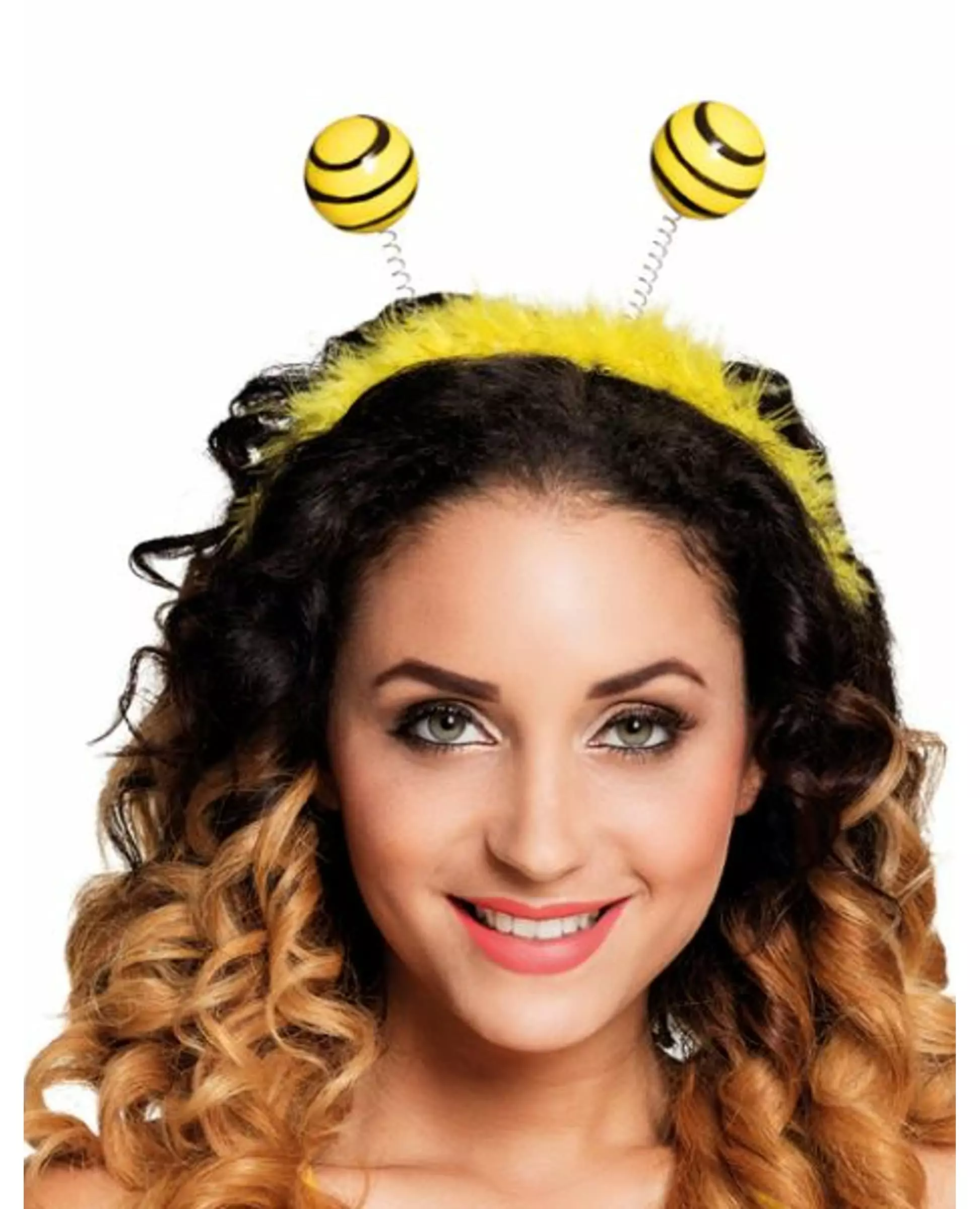 From flower to flower! This bee headband is for adults. It is plastic decorated with yellow feathers and is topped with two spring antennae with yellow balls with black spirals. This headband will be ideal to complete your bee costume for Carnival or during a costume party. Accessories included: Headband Material: - Plastic Feathers, plastic and metal Feathers, plastic and metal