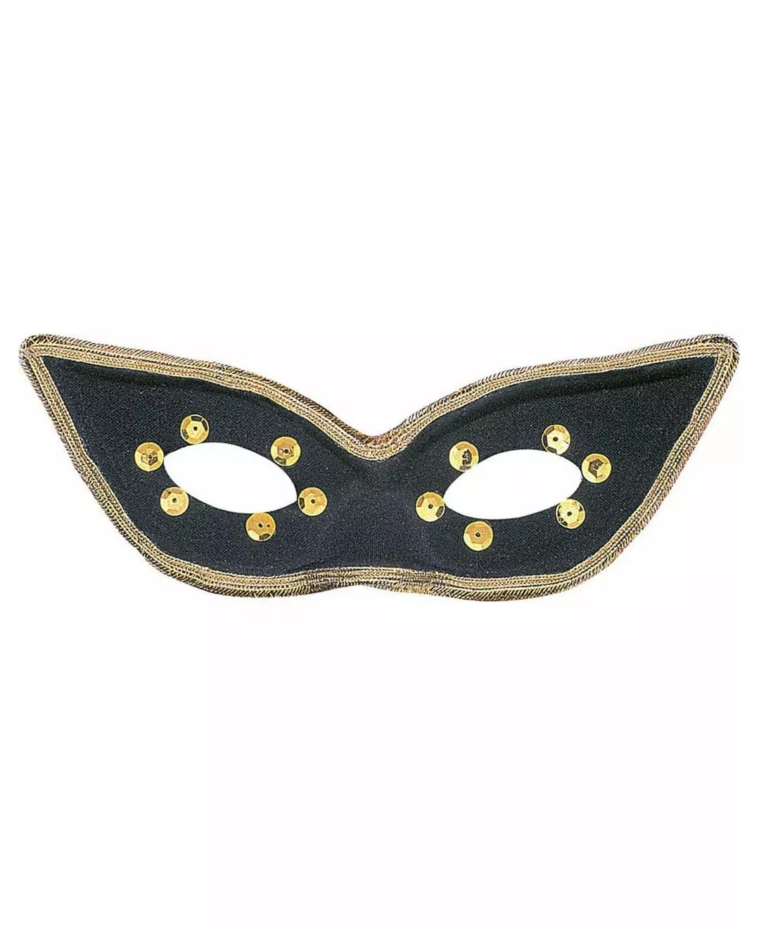 Come out masked! This mask is for adults. Black in color, it is decorated with a gold braid all over its perimeter. Gold sequins are also present around the eyes. A black elastic will provide a good fit. This accessory will be perfect for a masked ball, a theme party or for carnival. Copyright Widmann SRL Accessories included: Mask,