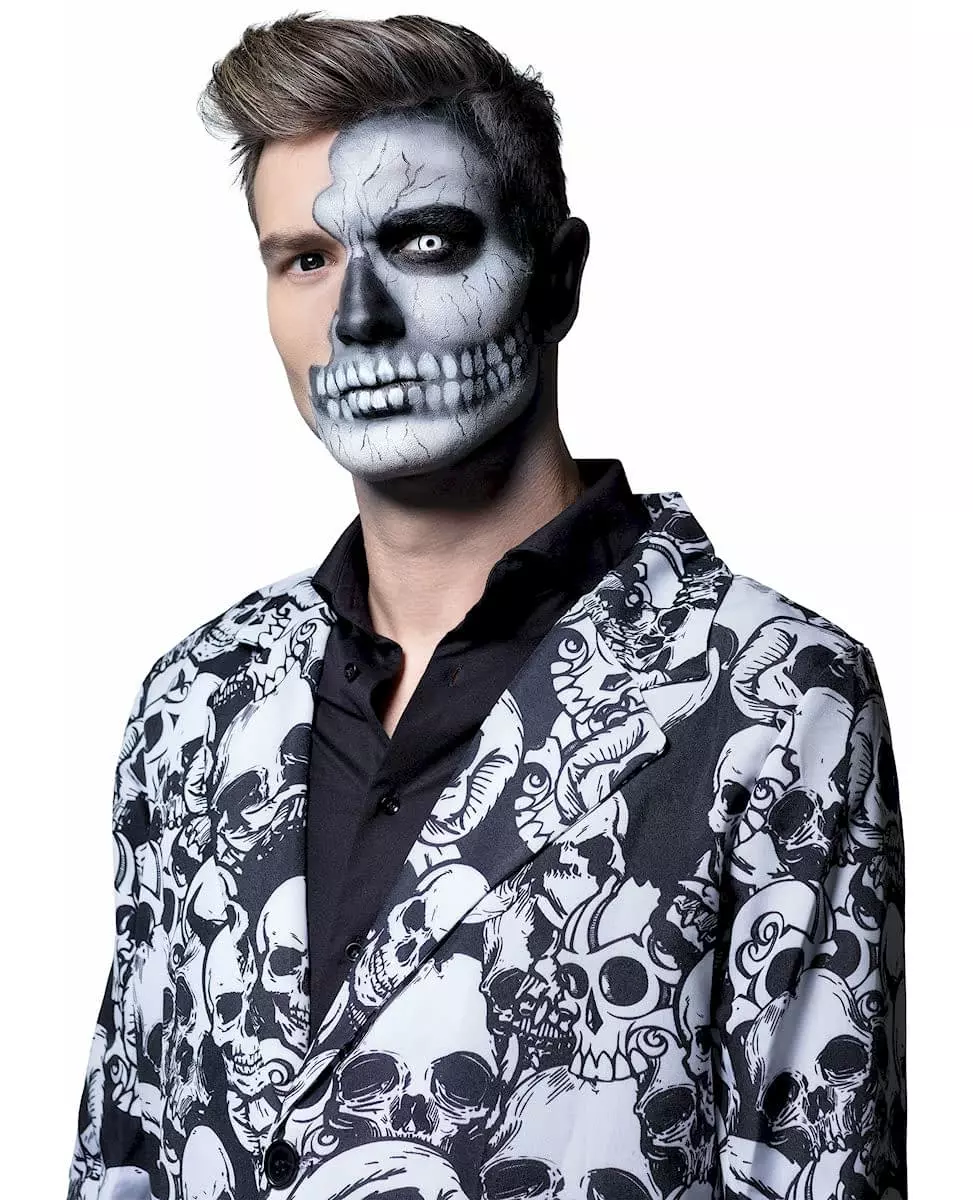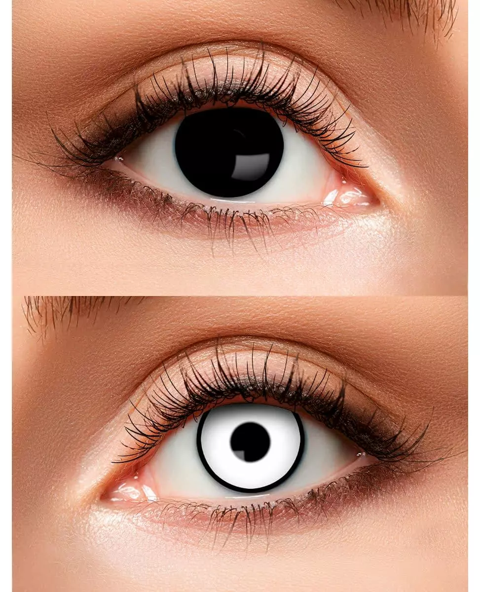 The perfect Halloween lenses! This pair of lenses is for adults. It consists of a black lens and a white lens with black edges. They can be used for 3 months after opening. This pair of lenses will be perfect for adding the finishing touch to your Halloween costume!. Accessories included: 2 lenses