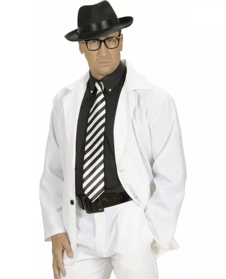 Unisex tie! This black and white striped tie for adults measures approximately 9 cm wide by 1.42 meters long. With a satin finish, the back part will be aesthetically fixed thanks to a loop. (Only the tie is included) To complete a gangster costume or a student outfit, this accessory will be ideal for your fancy dress parties. © Copyright Widmann SRL. Accessories included: Tie Material: 100% Polyester Care: Hand wash