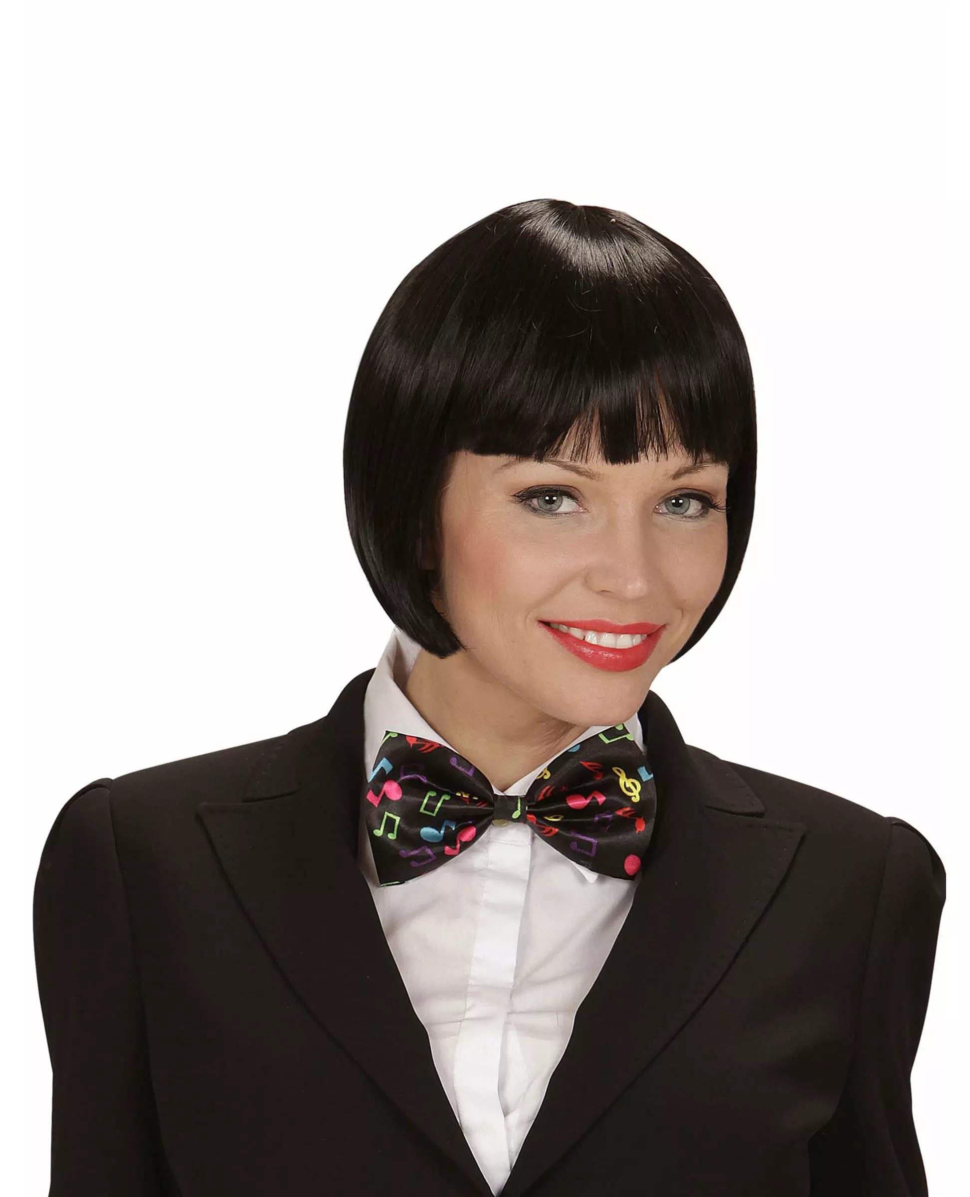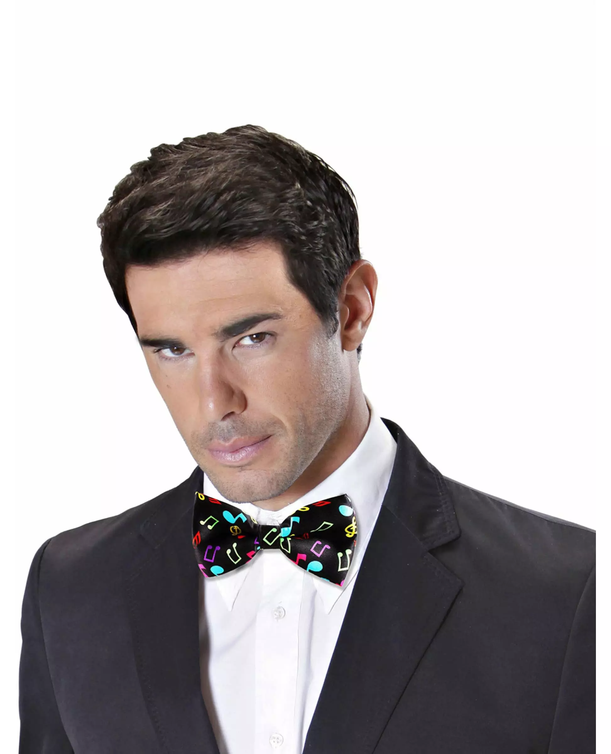 Do, Re, Mi, Fa, Sol La, Si, Do! This pre-tied bow tie is for adults. It is black in color and is printed with different musical notes. It measures approximately 14 x 7.5 cm. This bow tie is made of polyester and will easily stay around your neck thanks to its adjustable elastic. This accessory will be perfect to complete your outfit for a music-themed evening. Copyright Widmann SRL. Accessories included: 1 Bow tie Material: - Polyester Measurements: - 14 x 7.5 cm.