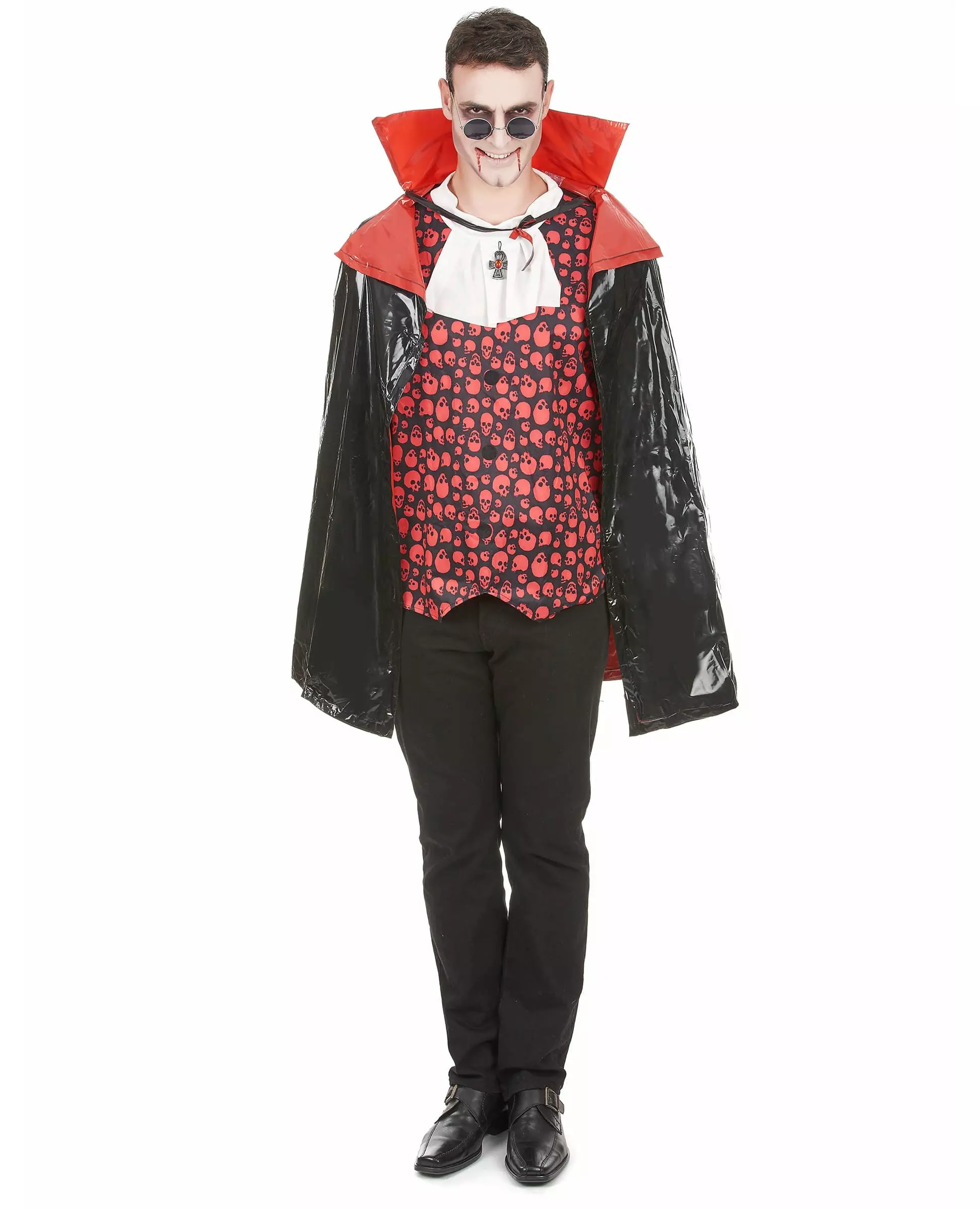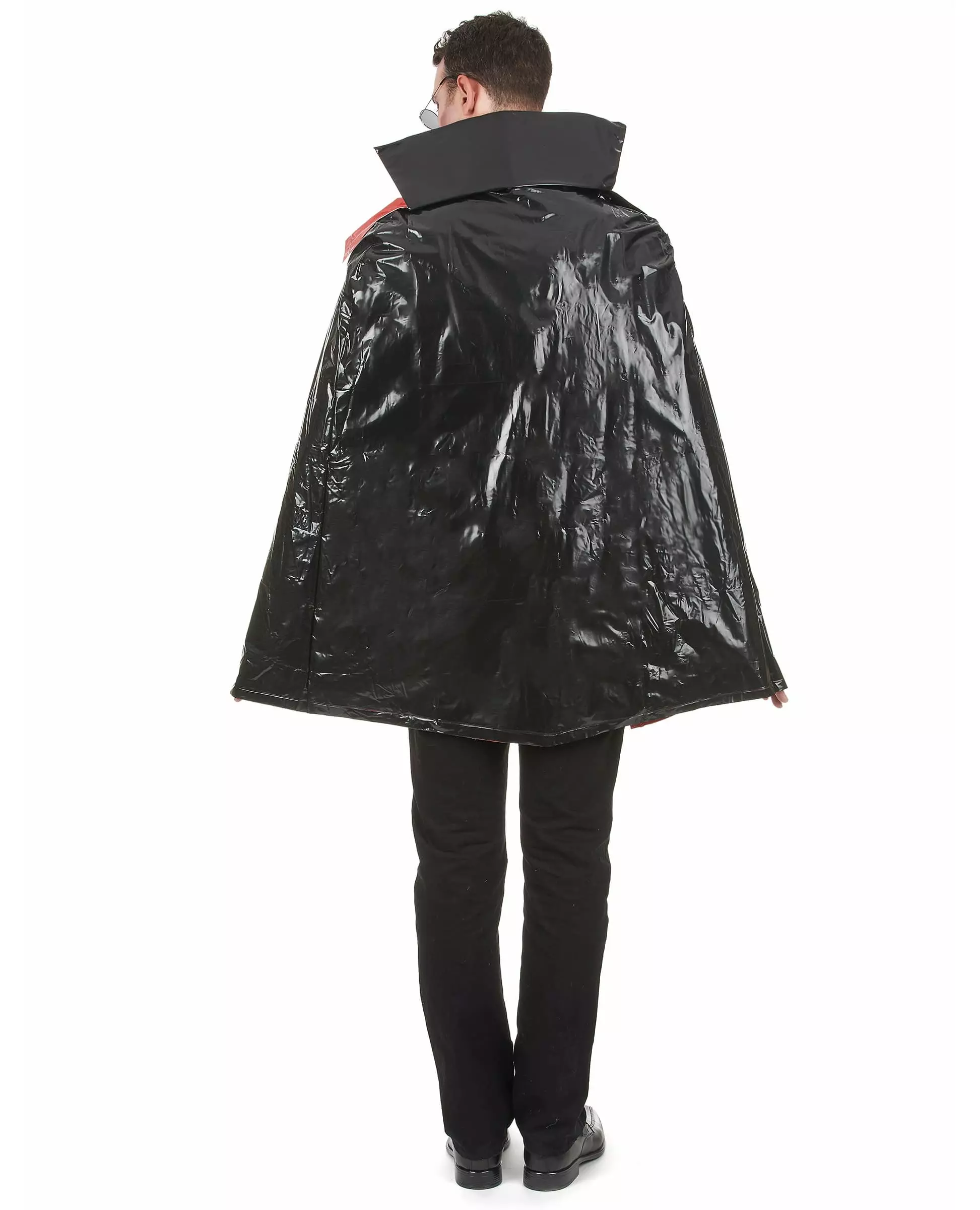 Vinyl! This vampire cape is for adults and has a vinyl-like appearance. It measures approximately 90 cm in length and includes a rigid collar that you can keep raised. The cape attaches to the front with two vinyl straps. The cape is black on one side and red on the other. To complete a vampire costume, this cape will be perfect for Halloween night with its shiny effects!. Accessories included: Cape