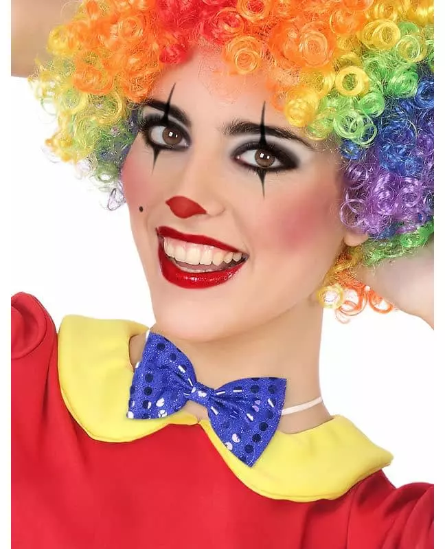 You'll be the clown of the evening! This adult bow tie is blue with large sequins. It is worn with an elastic band. This blue sequined bow will be perfect to complete your clown costume for Carnival. Accessories included: Bow tie Material: 100% Polyester 100% Polyester