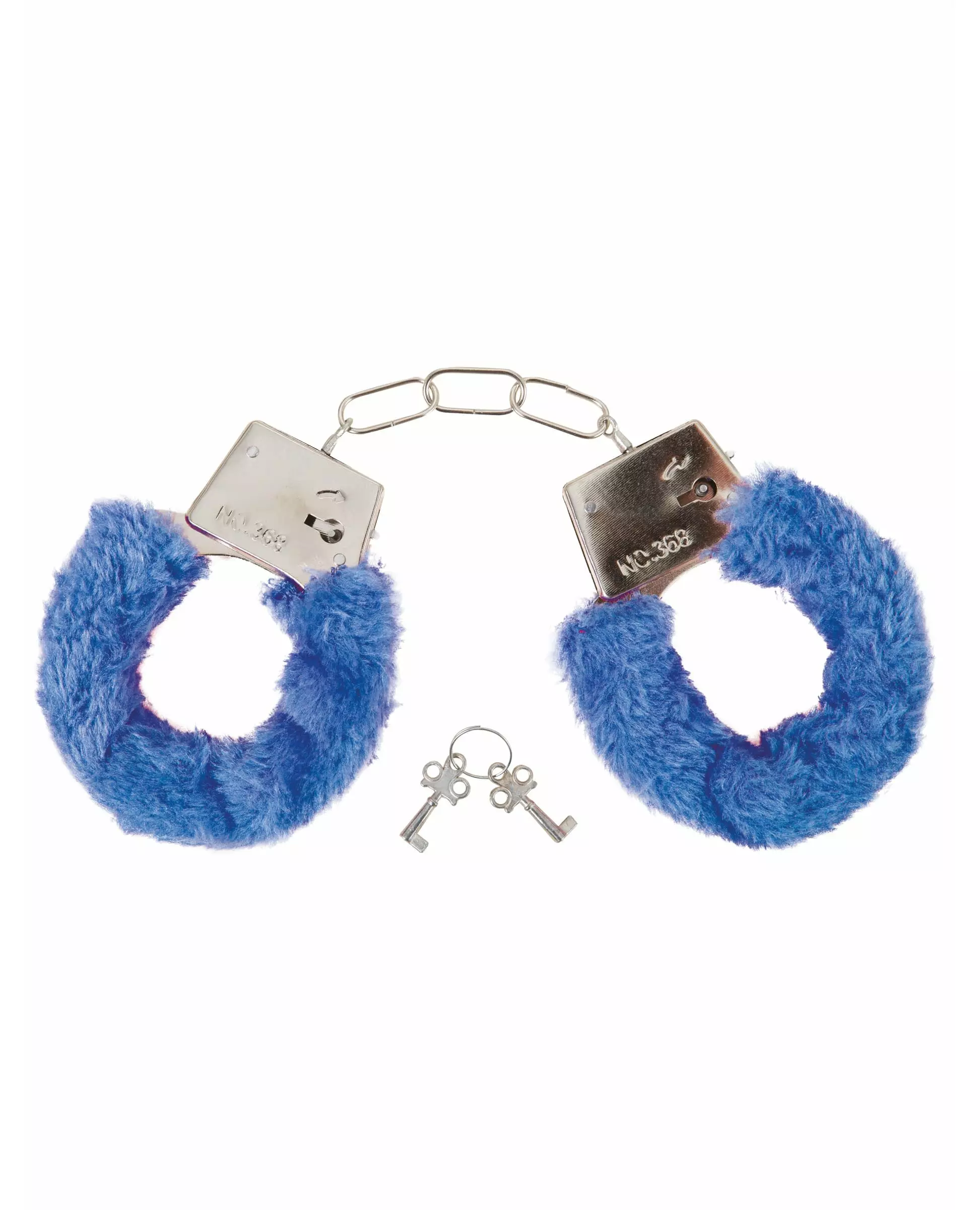 Tie him up, but gently! These handcuffs are for adults. They are made of blue fur and have two keys. This pair of handcuffs will be perfect for celebrating the end of your bachelorhood!. Accessories included: Handcuffs 2 Keys