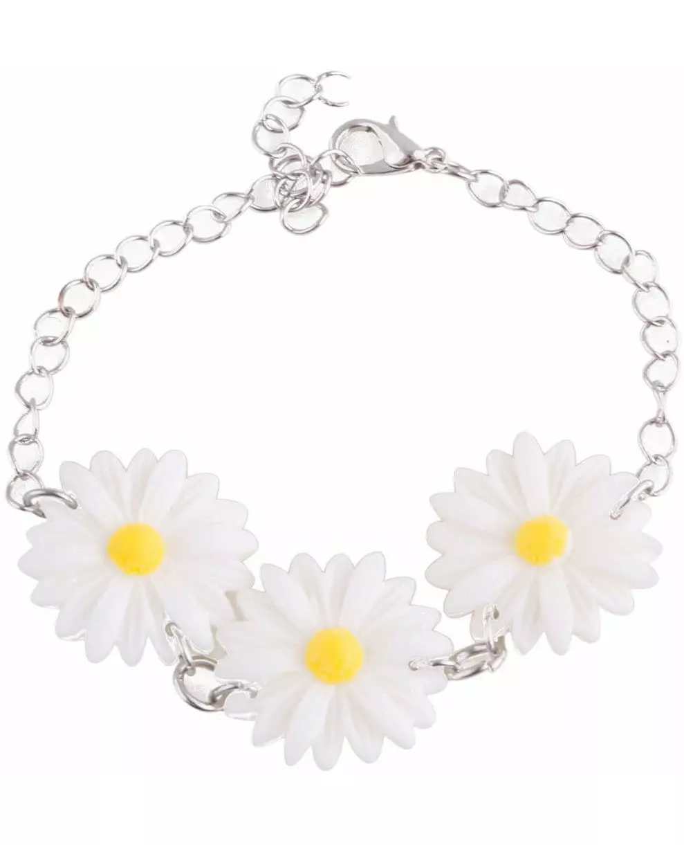 I love you... a little... a lot... madly... This adult bracelet is made up of a silver chain with 3 small white plastic daisies with yellow hearts. This daisy bracelet will be perfect for accessorizing a large number of outfits for the next carnival. Accessories included: Bracelet Material: Plastic Plastic