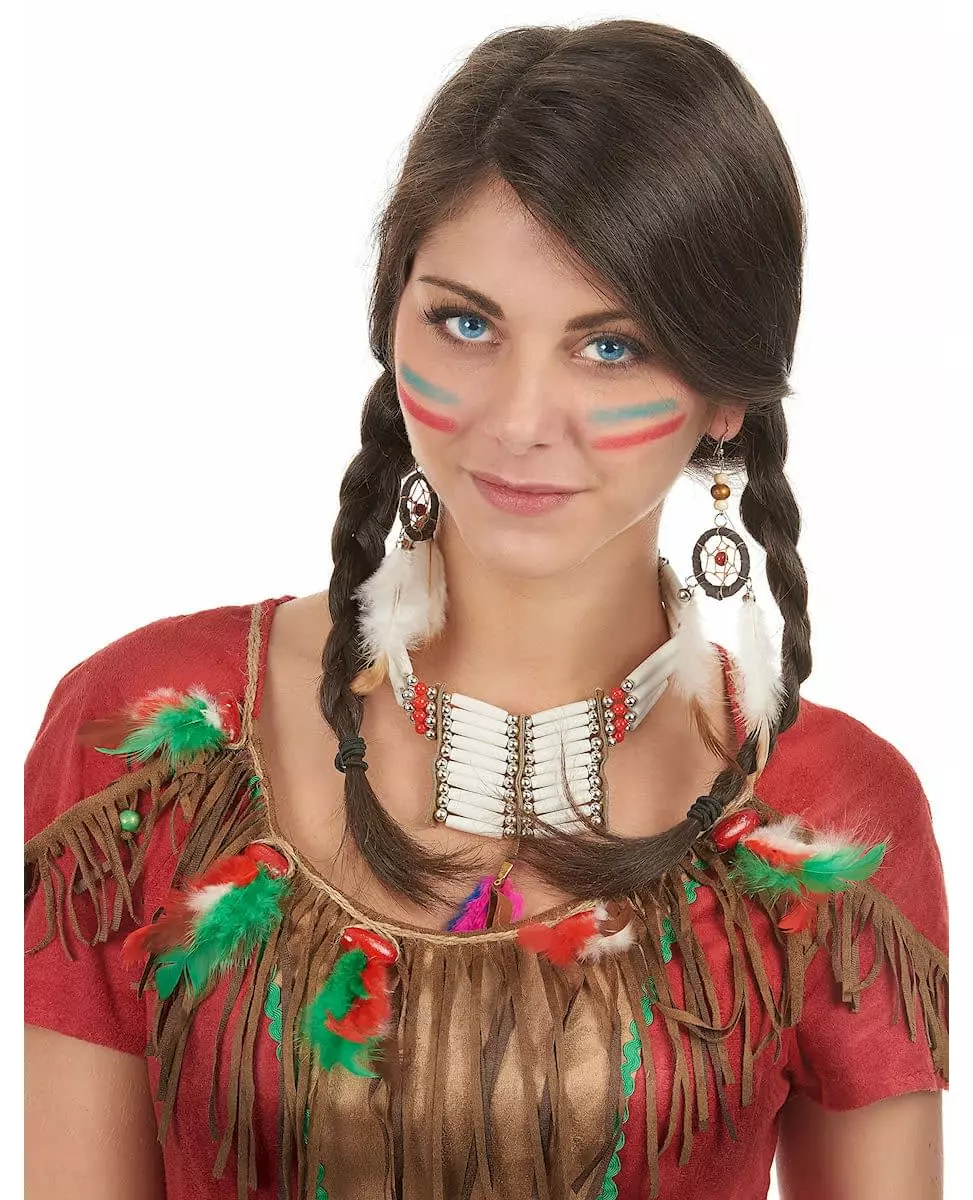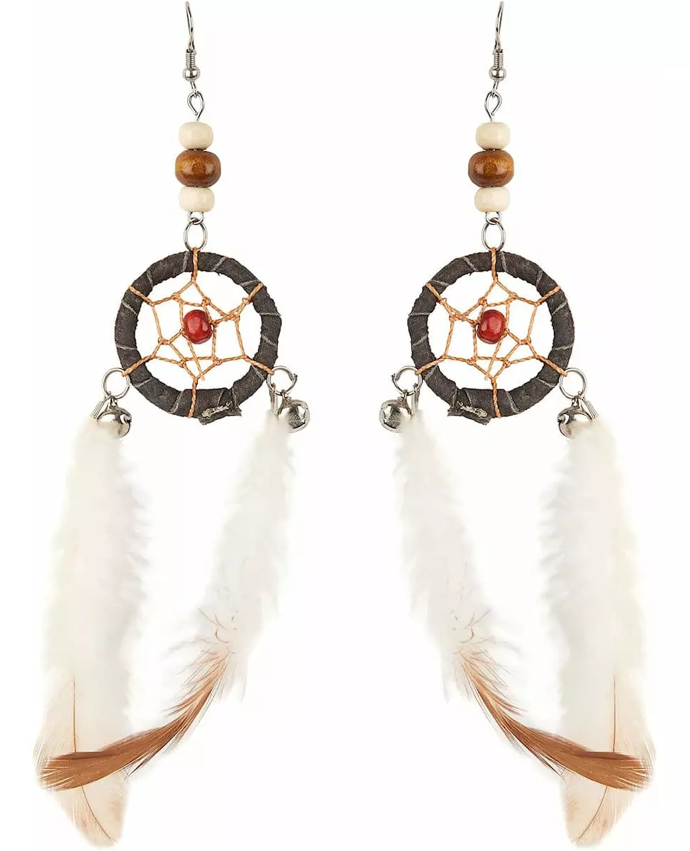 Complete your Indian costume with these pretty earrings. These adult earrings represent Indian dreamcatchers. White and brown feathers as well as bells are attached to the earrings. These earrings require pierced ears. These earrings will be perfect to complete an Indian costume for Carnival or a western evening. Accessories included: 2 Earrings
