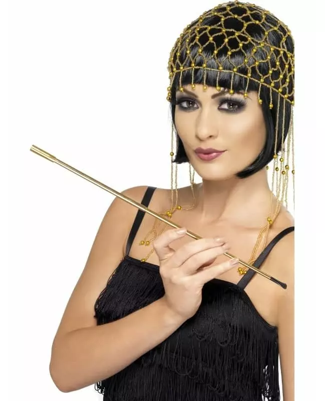 Telescopic! Golden telescopic cigarette holder. The cigarette holder measures 21 cm when in its original position and can be extended to 46 cm, more than double. This fashion accessory is essential for appearing as the most fashionable at a carnival or an evening with friends. It will enhance a Charleston costume, for example.