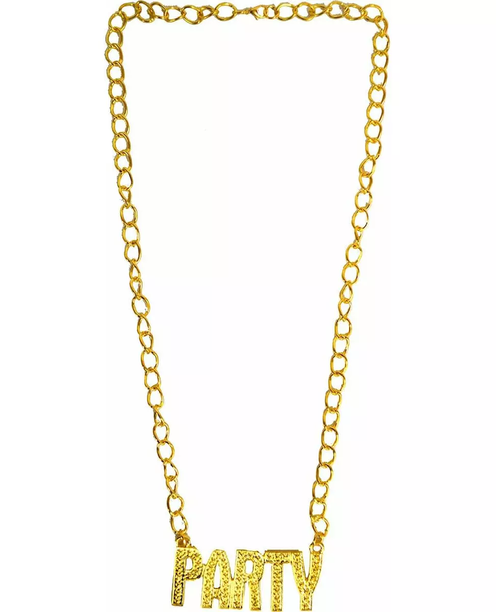 Don't forget the accessories! This "Party" necklace is gold-colored, it will perfectly complement your outfit. The gold chain will give you a modern and trendy effect that will make all your guests green with envy. If you want to be the center of the evening, this necklace will satisfy you and transform you into the real king of the party. The golden party necklace for adults is the ideal accessory for a successful evening. Accessories included: Necklace Material: Metal