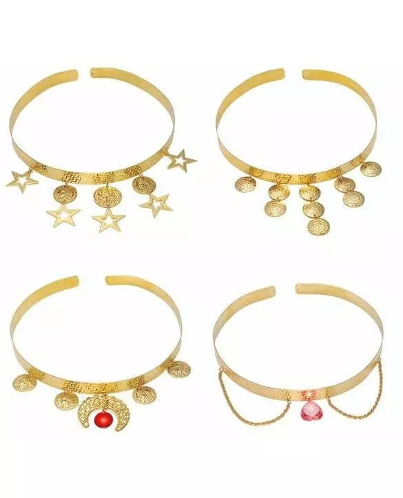 beautiful headpiece! This headpiece for oriental dancers is gold in color (only the headband is included). It has four different designs and you will receive one of them at random. This piece of jewelry is ideal for completing an oriental dancer costume for a fancy dress party! Copyright Widmann SRL. Accessories included: Headpiece Material: 100% Polyester 100% Polyester