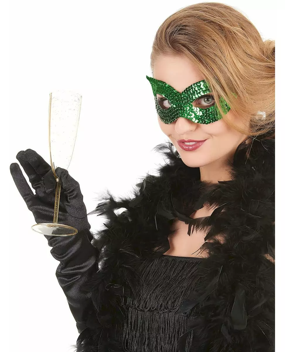 For a green look! This Venetian wolf is covered in green sequins. The sequins are shiny. The mask is cut into points and these are oriented upwards. An elastic will ensure the accessory stays on your face. For Saint Patrick's Day for example or a rhinestone and sequin evening, this brightly colored wolf will be ideal to dress up your look! Accessories included: Wolf,