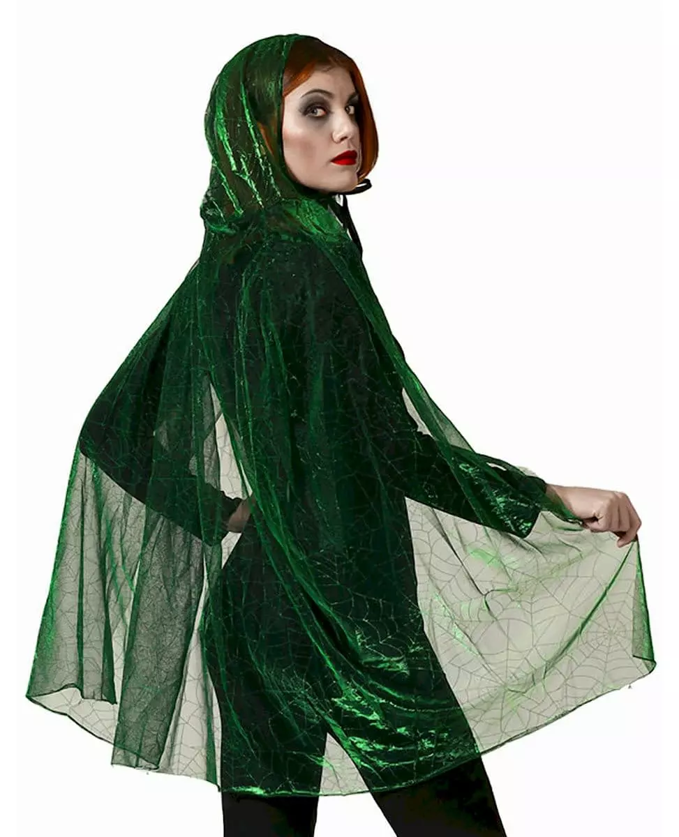 Adult Green Spider Web Hooded Cape