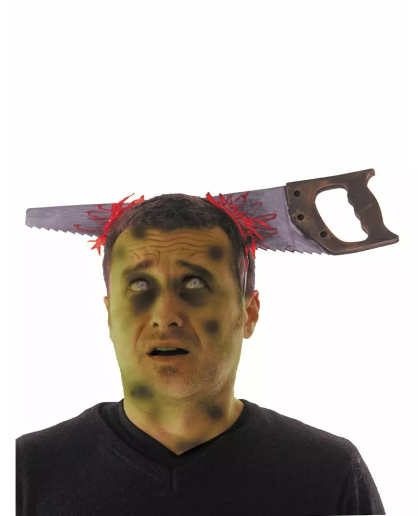 You'll be stunned! This adult headband is made of black plastic. It is decorated on each side with a half saw made of rigid foam. Fake blood is represented in the form of red fabric splatters. This headband will be perfect to complete your zombie outfit on Halloween night. Material Plastic Plastic Accessories included - Headband