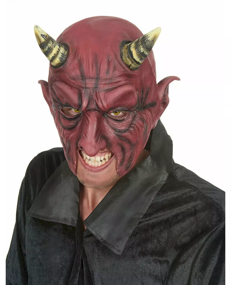 Adult Halloween Horned Demon Latex Half Mask