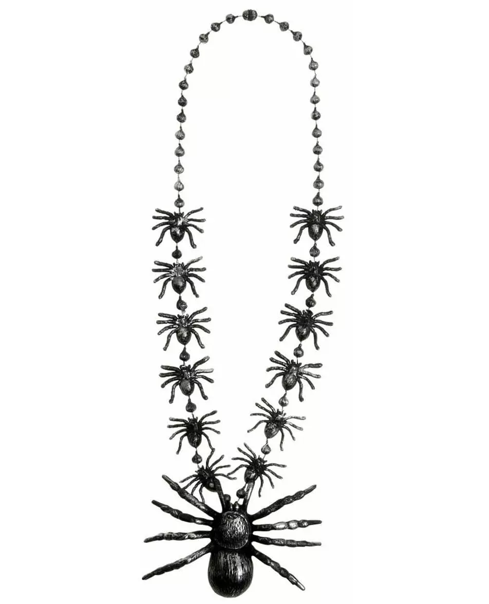 Become a real witch on Halloween night This adult necklace is made up of small black and silver plastic spiders. A larger spider adorns the center of the necklace, it measures 8 cm long. This necklace measures approximately 40 cm. This accessory will be perfect to complete a witch costume for a horror-themed party or to celebrate Halloween. « © Copyright Widmann SRL ». © Copyright Widmann SRL. Accessories included: Necklace Material: 97% Polyethylene, 3% Paint